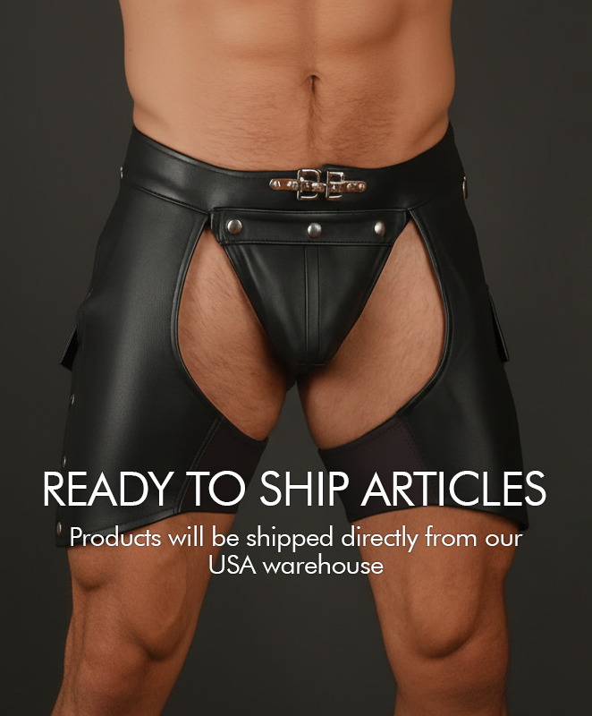 Made of very fine quality COWHIDE LEATHER,SINGLE PANEL FRONT, Snap Button fastening, Side Laces , Adjustable Waist , Detachable Briefs, Fully Lined, Fine quality polyester lining