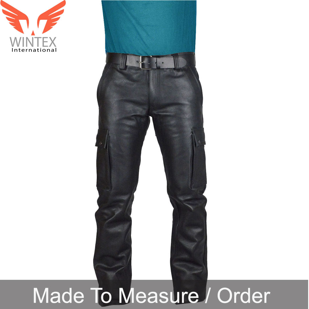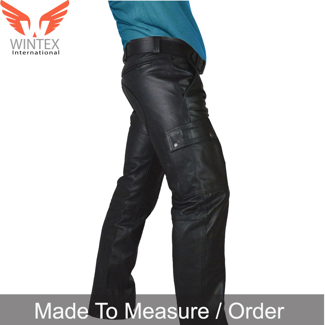 Made of fine and Soft Quality Natural Grain Cowhide Leather, Snap Button Closure, YKK Zip Fly, 2 Front Cross pockets, 2 Cargo Pockets With Snap Buttoned Flaps, 2 Back Buttoned Pockets, Polyester Lining till Knees for extra comfort, Hemmed bottoms. Durable, Elegant, and Carefully Stitched.