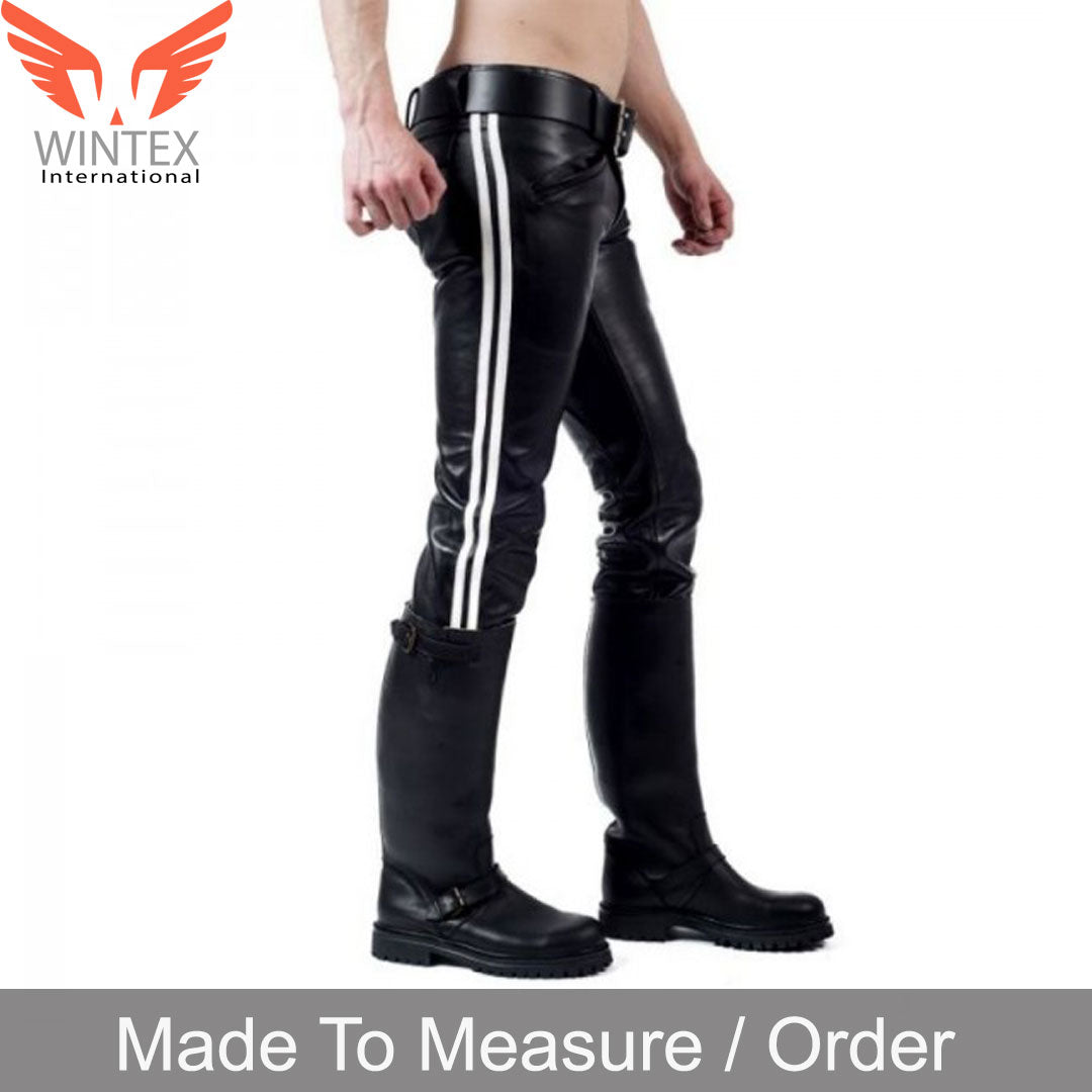 Men’s Genuine Leather Bikers Pants with Double Side Stripes