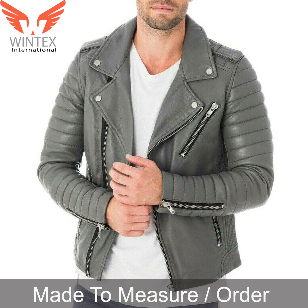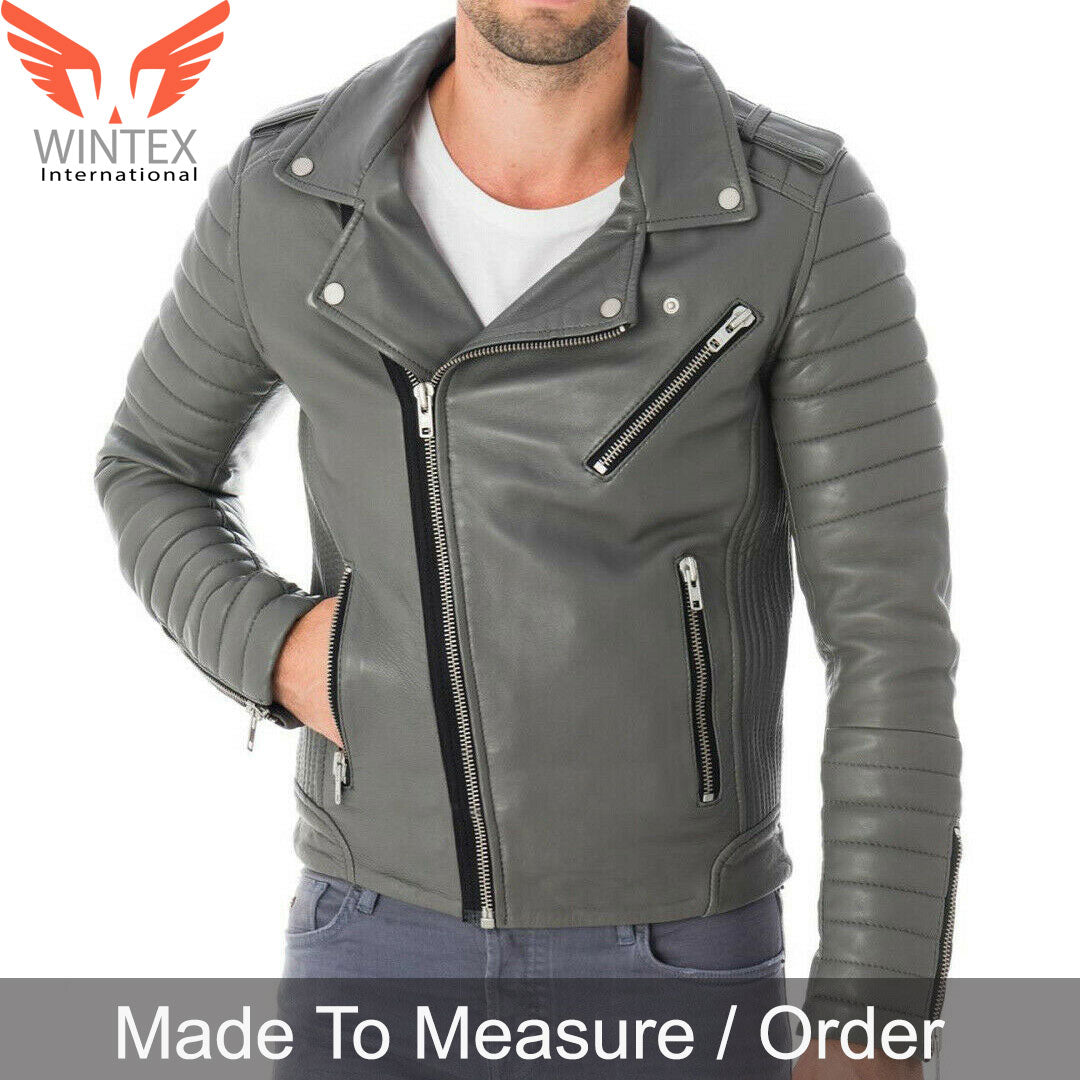 Zip-Up Front, Genuine Full Grain Cowhide Quilted Panels Grey Leather. 3 Front Zipped Pockets, Buttoned Lapels & Epaulets, 2 Inner Pockets. Classic Brando Style With Quilted Panels, Zipped Cuffs, YKK Heavy Zips, Polyester Lining. Strong & Durable Excellent Stitching and Fitting.