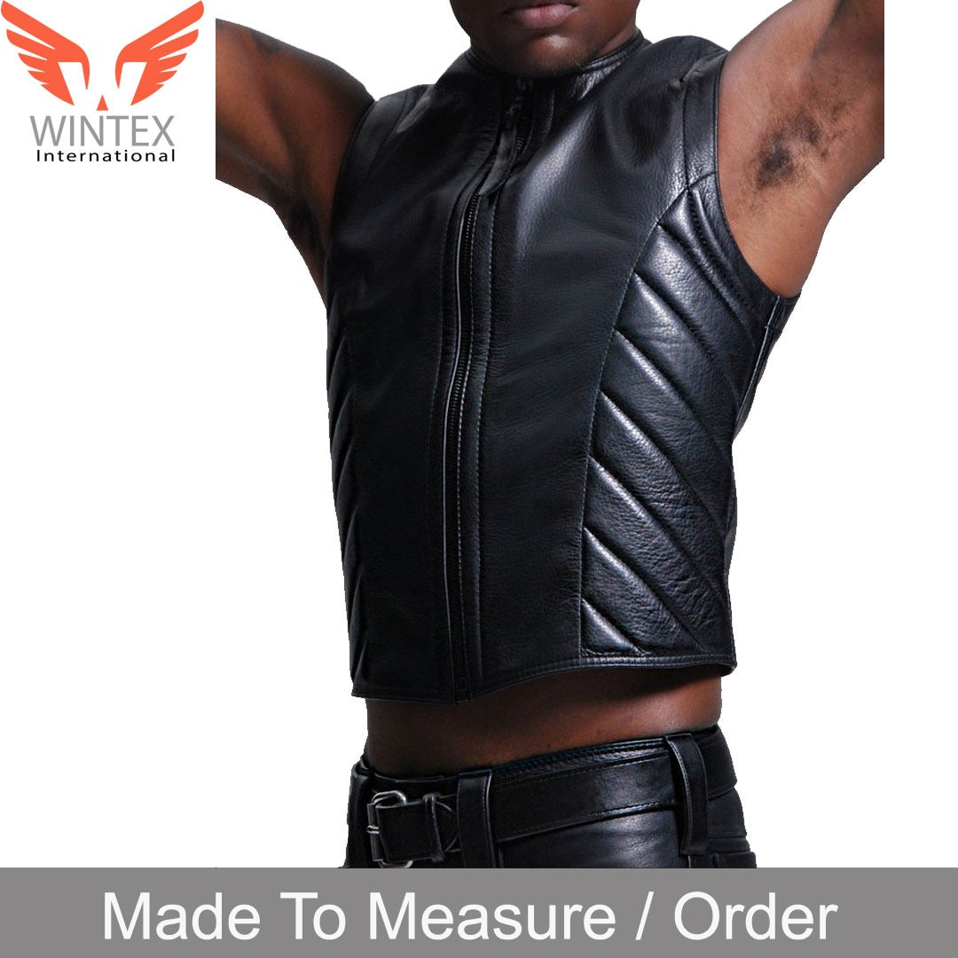 Made of Fine Quality Real Cowhide Black Leather Vest. Front Zip Closure, Quilted side panels, Double Stitched, Polyester Lining. Impressive and Exclusive Look, Finish, and Stitching.