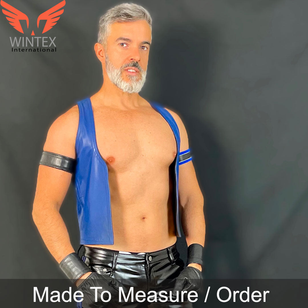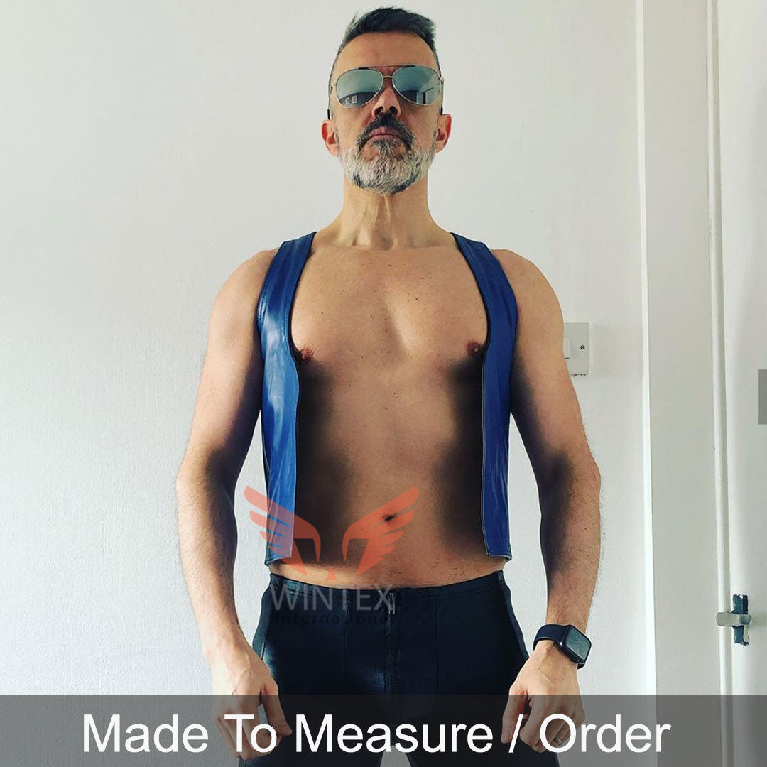 Men’s Cowhide Leather Bartender Vest Blue Leather Bikers Vest: