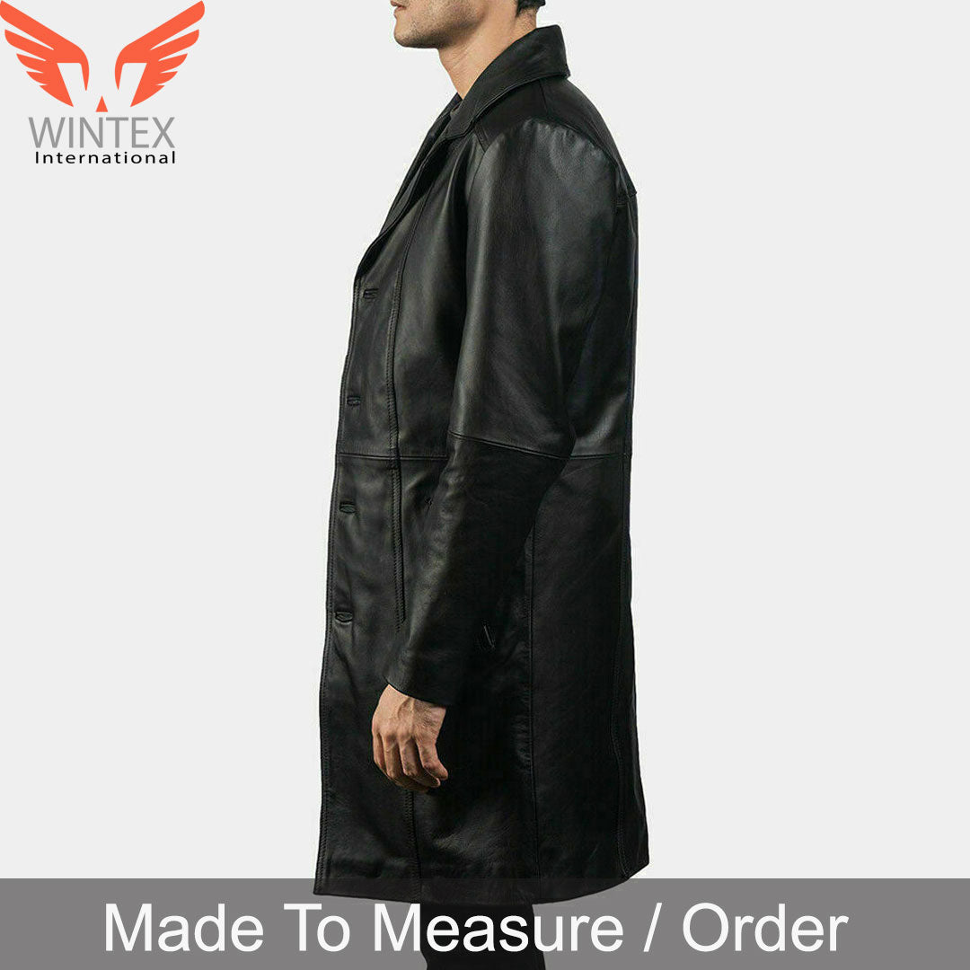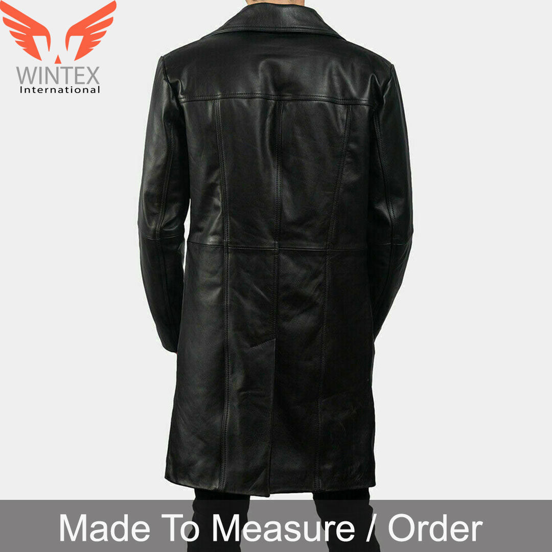 Wintex made leather long coat is made from the real Lamb leather, Button Front closure, Perfect for biker and fashion wear, 2 front pockets, Fully lined, Inside pockets, Hand made.