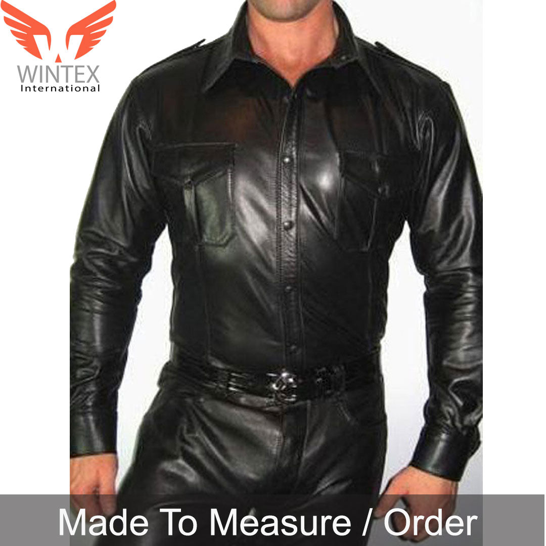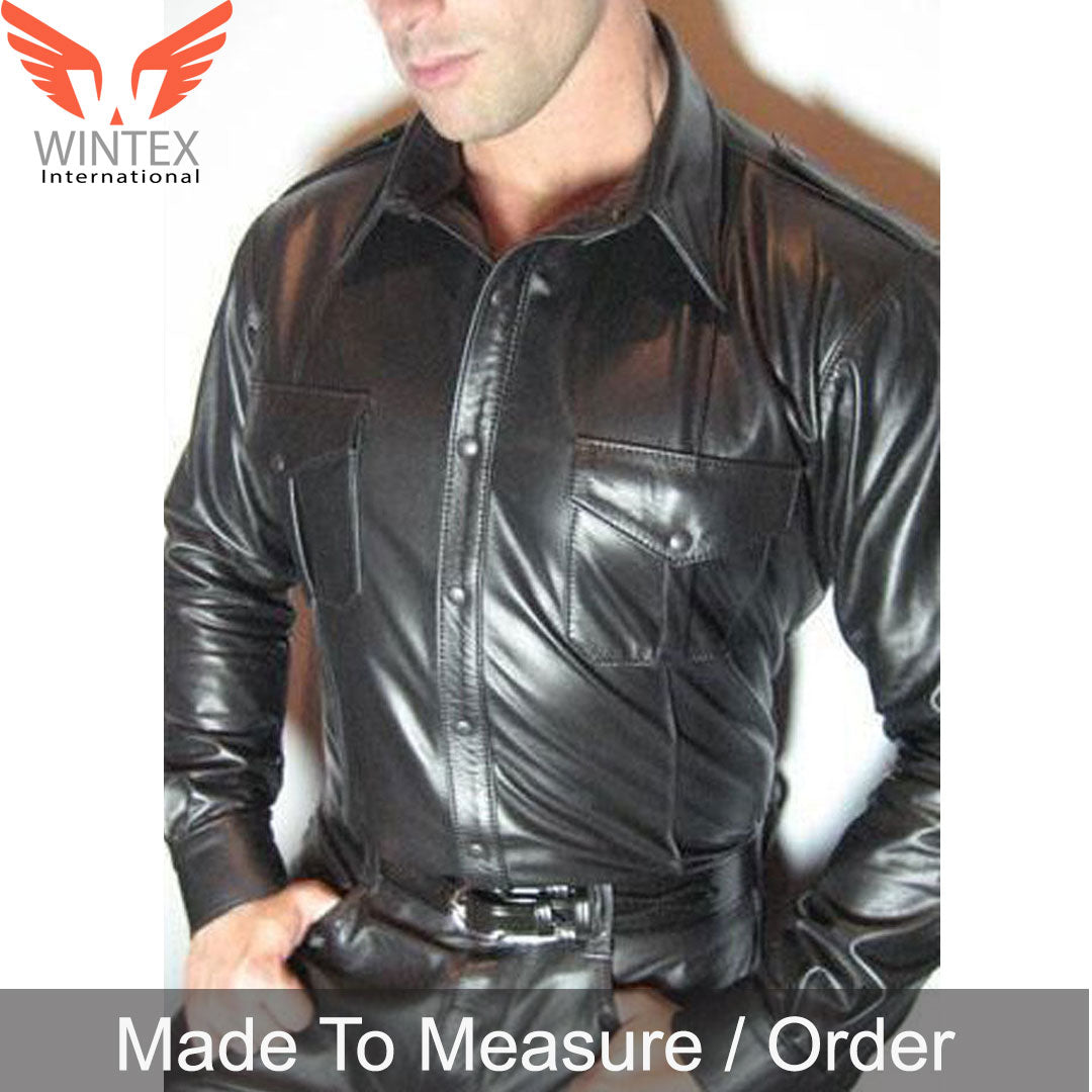 Men’s Real Lamb Leather Police Shirt Long Sleeves Leather BLUF Shirt