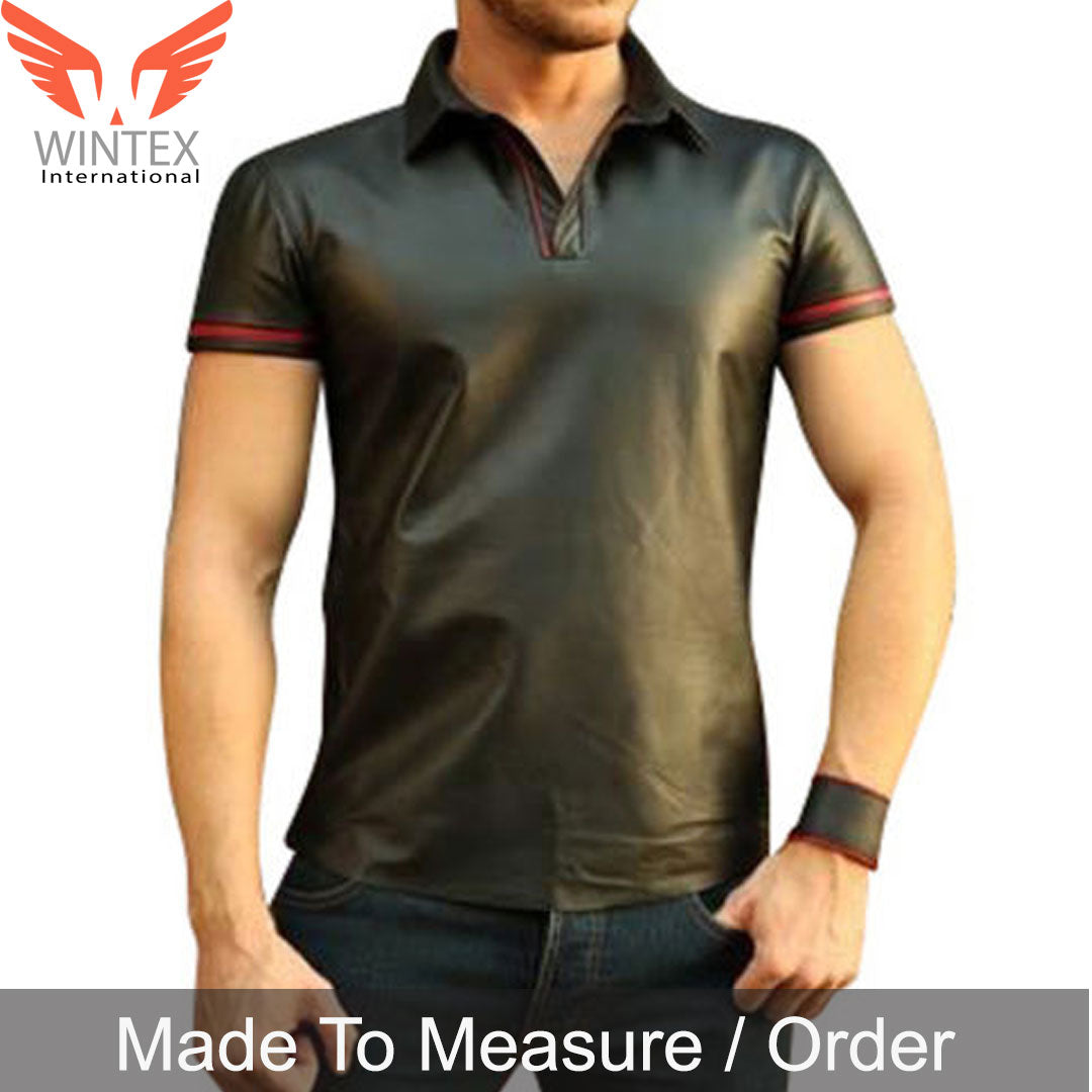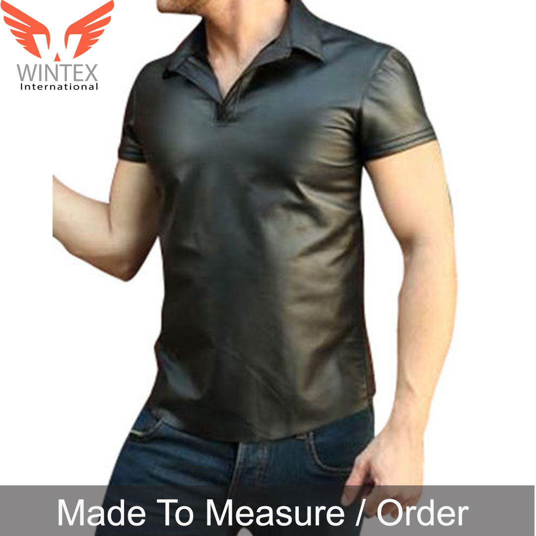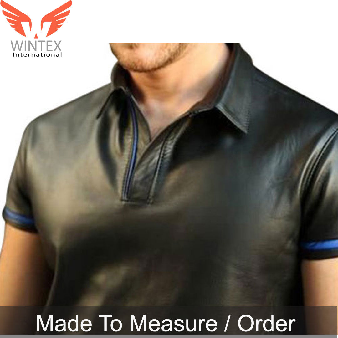 Men’s Real Lamb Leather Polo Short Sleeves Shirt In 3 Colors Variations