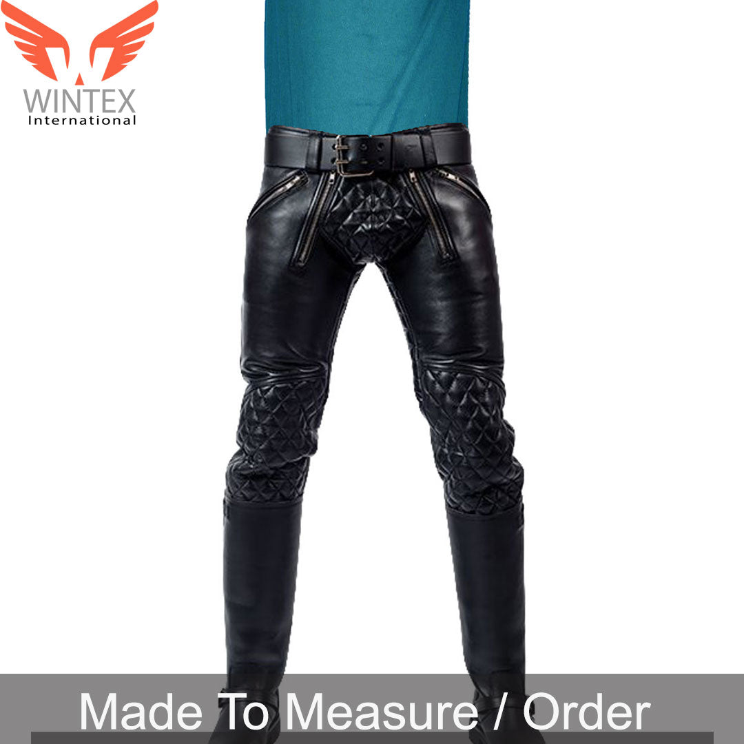 Men’s Real Leather Carpenter Pants With Quilted Panels Quilted Sailor Pants