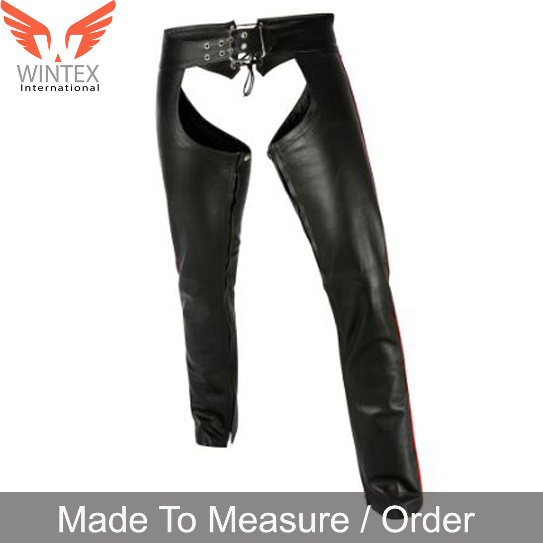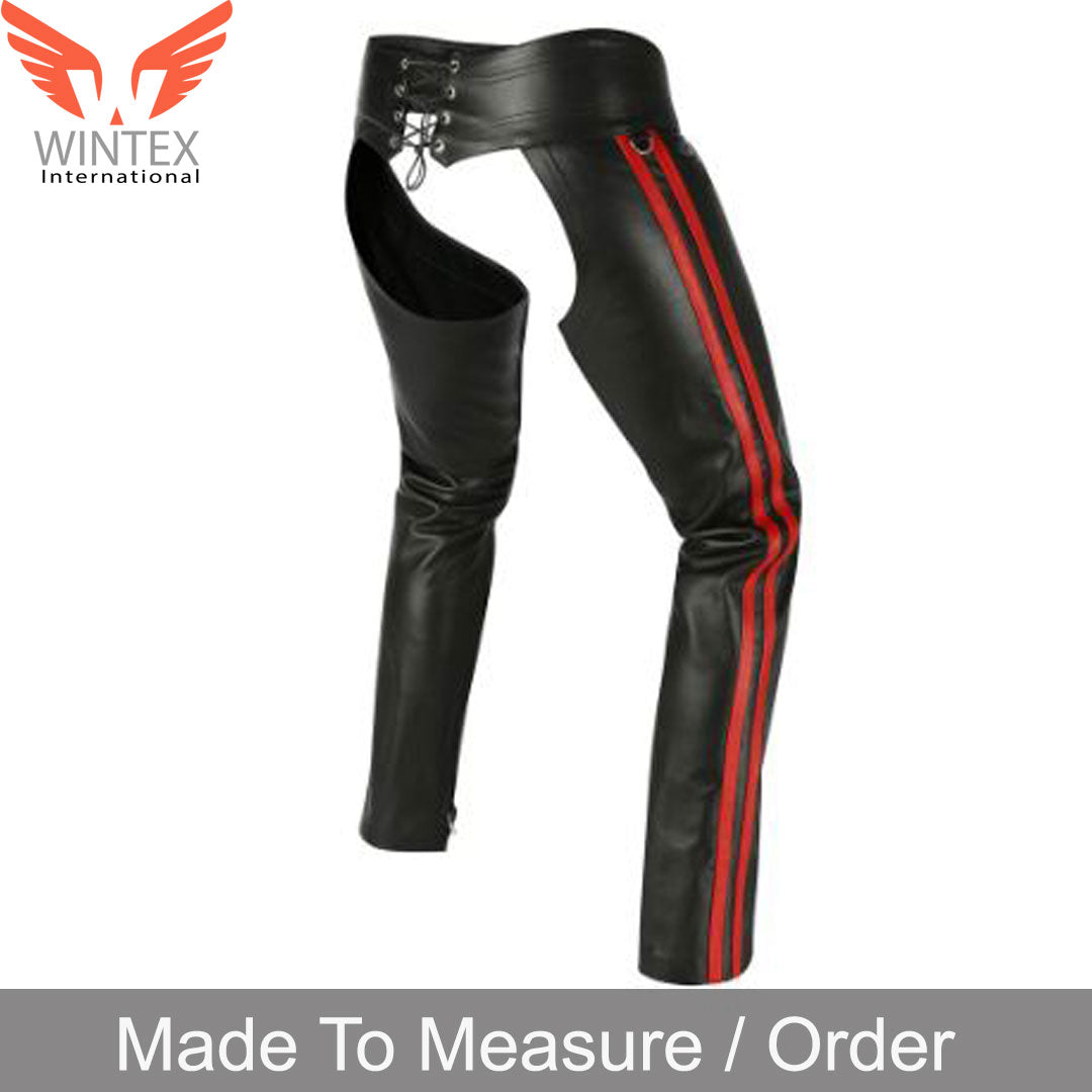 Men’s Real Leather Chaps Bikers Chaps With Detachable Codpiece & Side Stripes