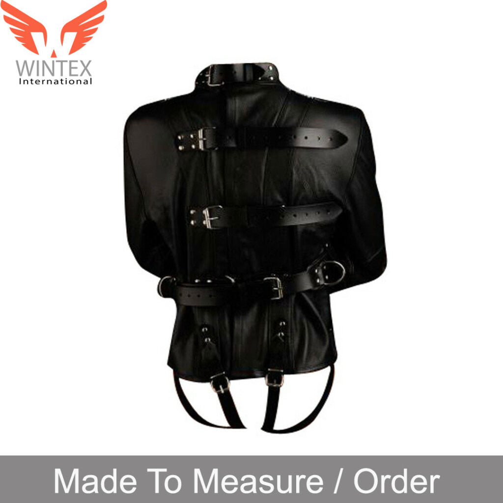 Wintex made of fine quality full grain Cow heavy duty Leather Straitjacket, It’s fully lined with very soft quality Polyester and incorporates high-quality rustproof steel D-rings and fasteners with a full-length zip, and is fully adjustable.