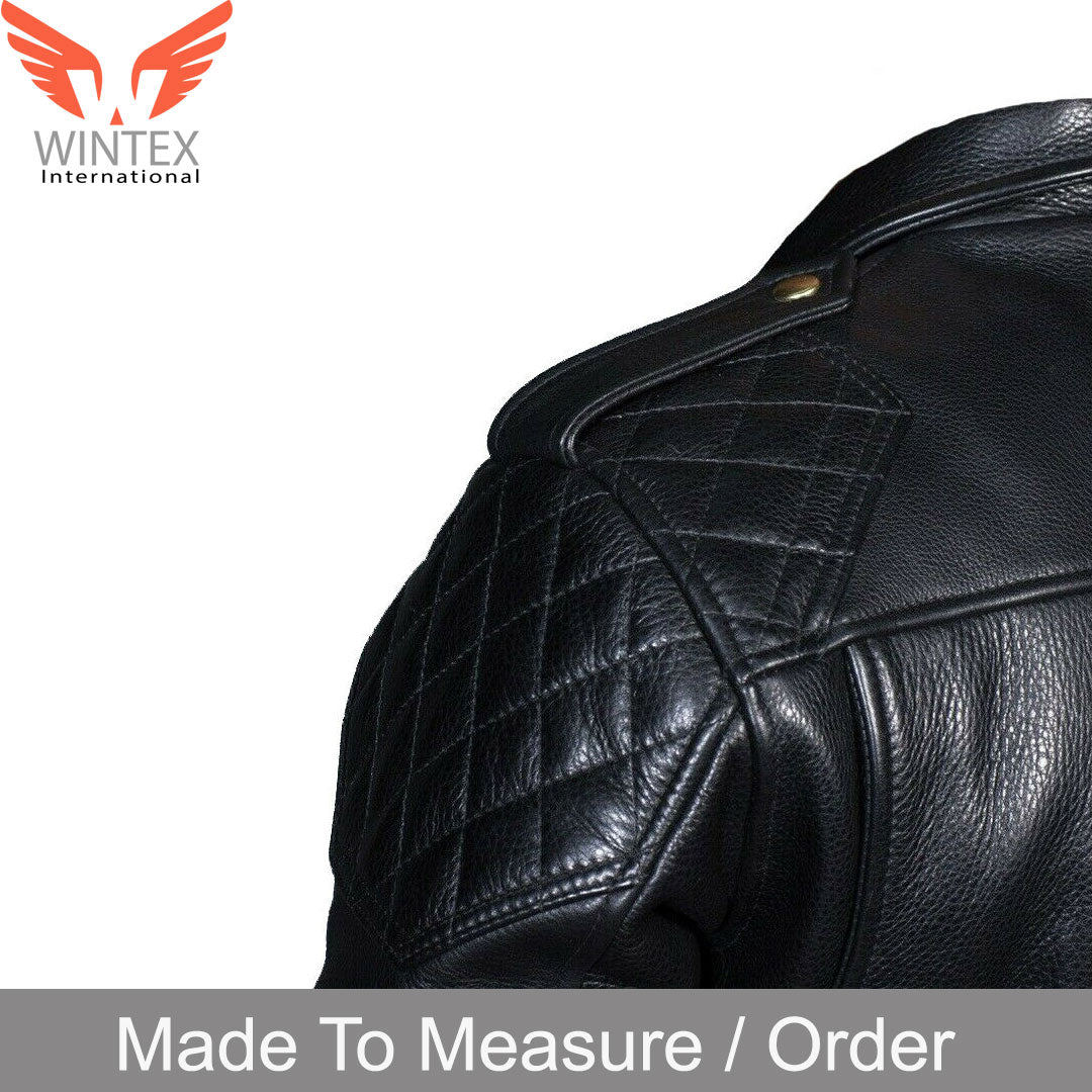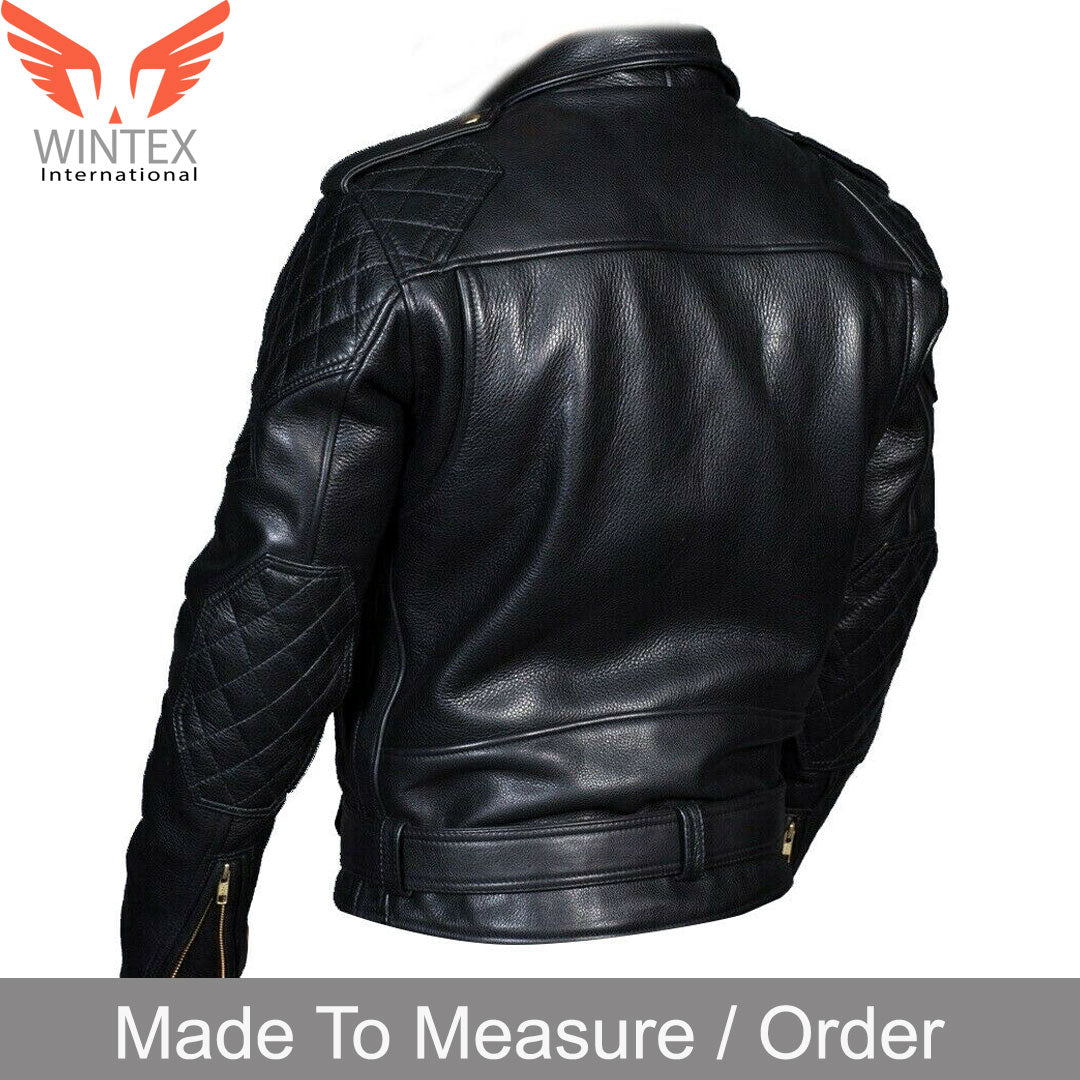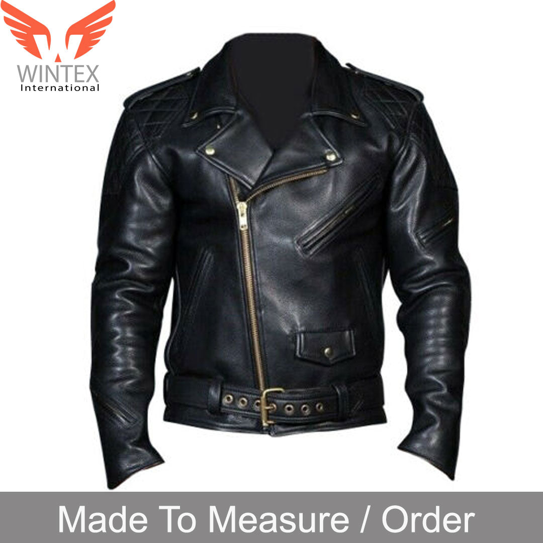 Zip-Up Front, Genuine Full Grain Cowhide Leather Bikers Jacket. 3 Front Zipped Pockets, Buttoned Lapels, and Epaulets,2 Zipped Sleeves Pockets, 2 Inner Pockets. Classic Brando Style With Quilted Panels, Zipped Cuffs, Waist Belt, YKK Heavy Zips, Waist Belt, Polyester Lining. Strong & Durable Excellent Stitching and Fitting.