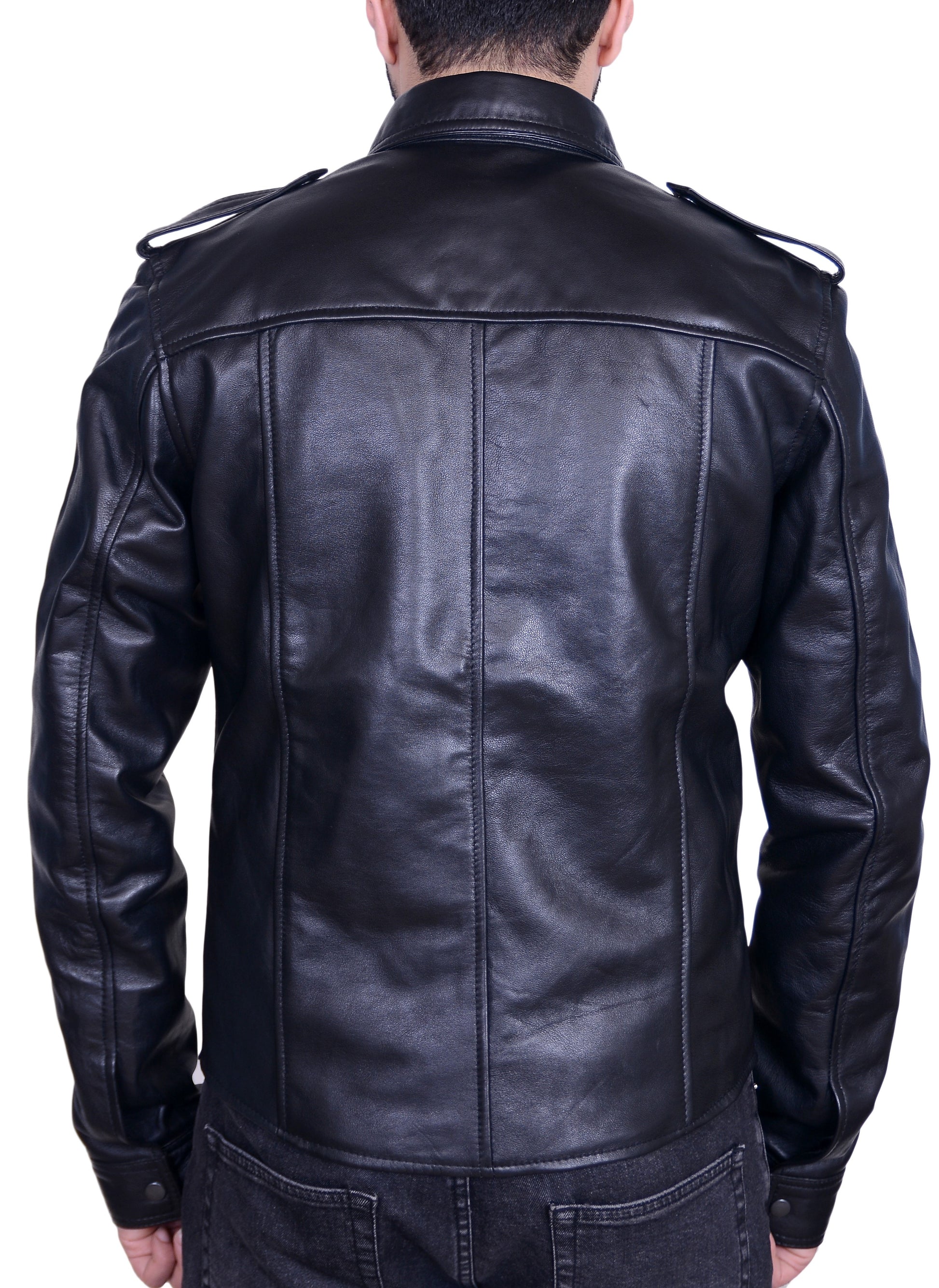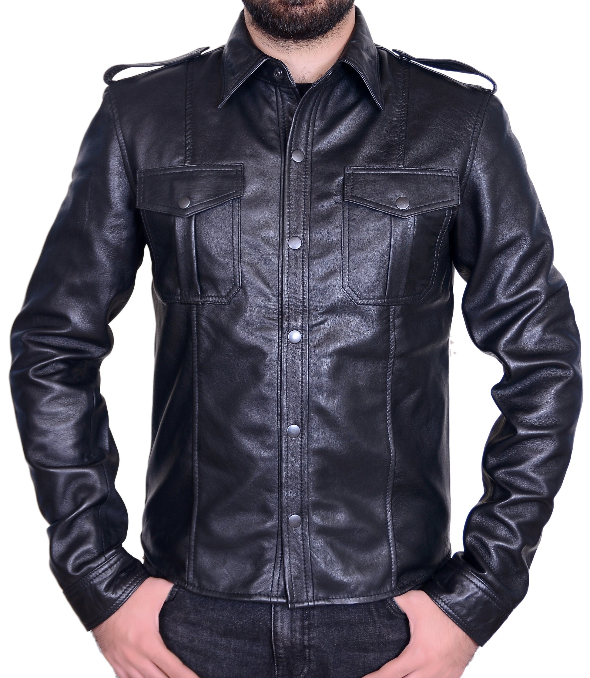 Mens Real Lamb Leather Police Style Long Sleeve Shirt