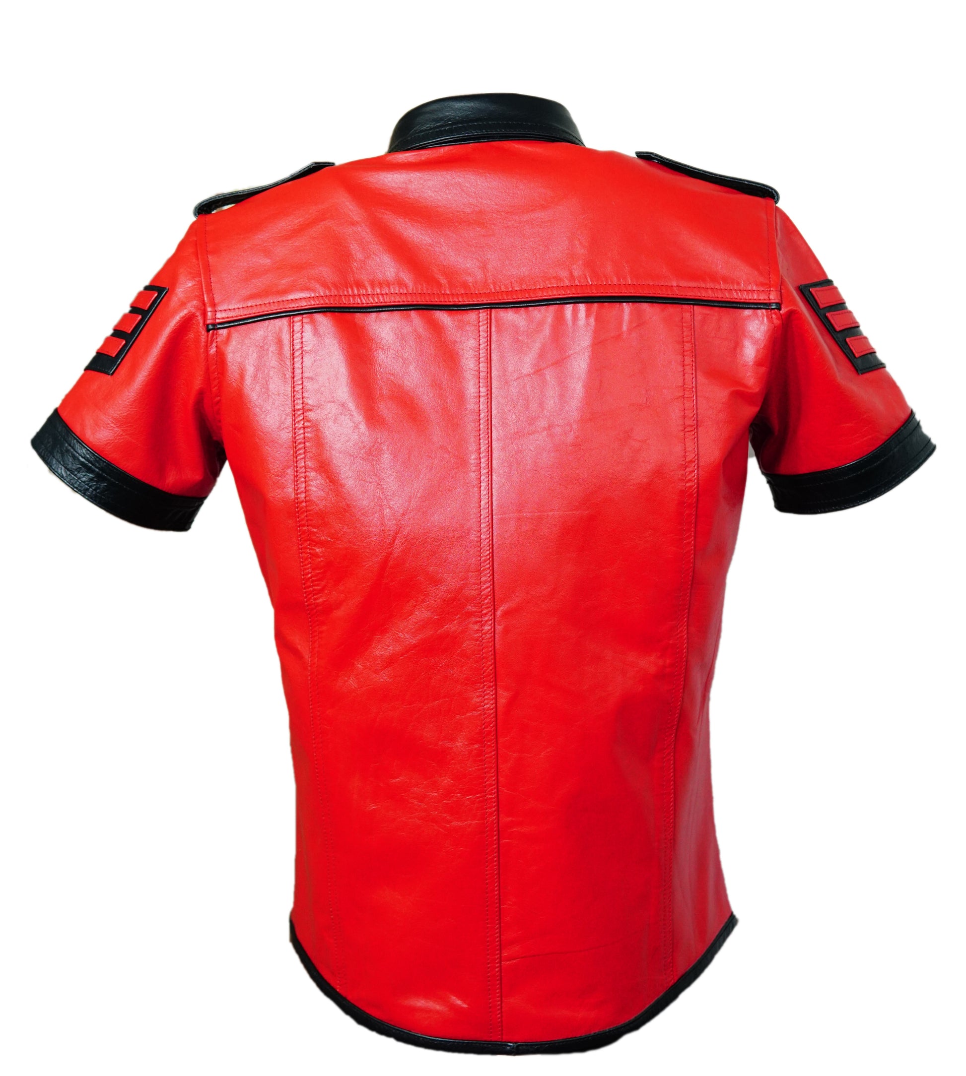 Made of fine quality Lamb Leather Shirts. Ideal Casual / Clubwear / Gay Outfit, Contrast leather Trims, Police Style chest pockets and epaulets. Chrome press stud buttons. Polyester fine lining.