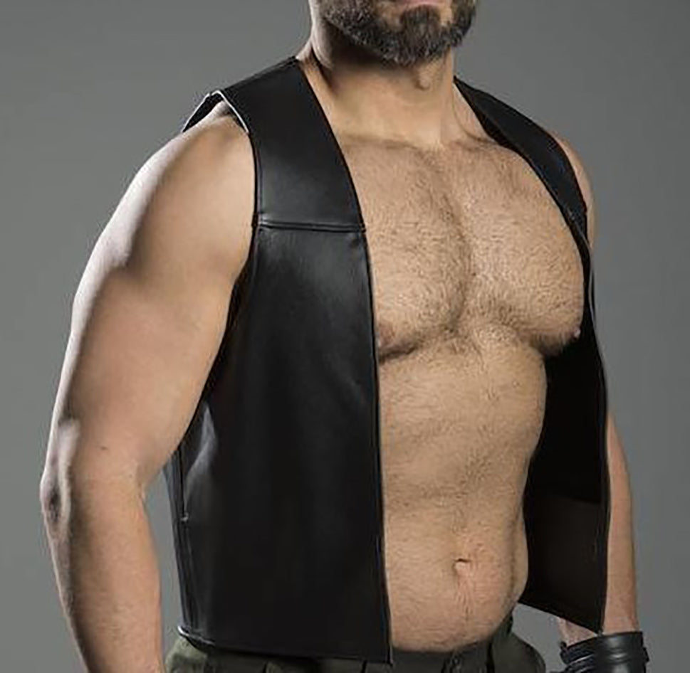 Men's Real Leather Bartender Vest Leather Vest Front Open Vest