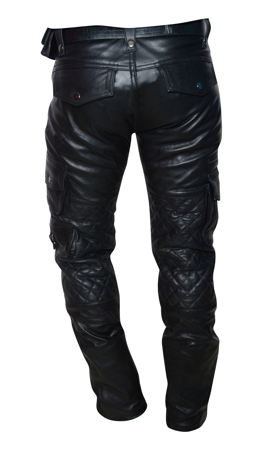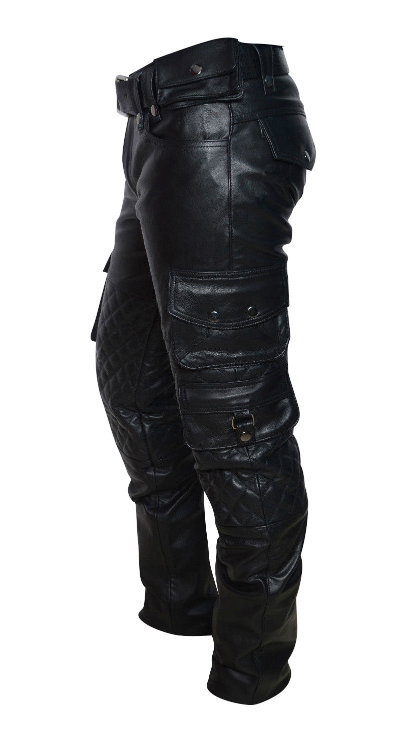 Premium Black Natural Grain Cowhide Leather Cargo Pants.