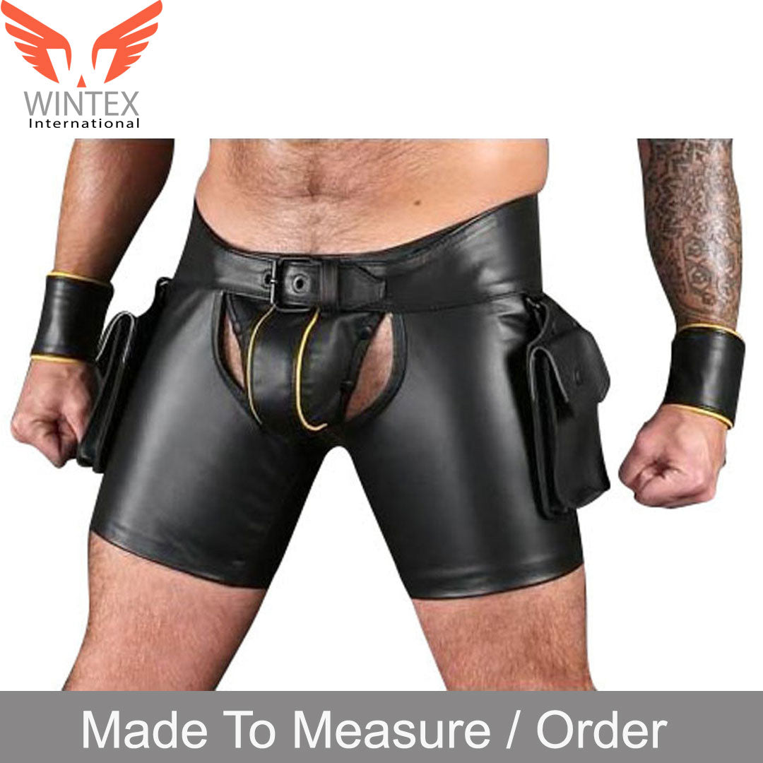 Men’s Real Cowhide Leather Chaps Shorts Cargo Pockets Chaps + FREE WRIST BANDS