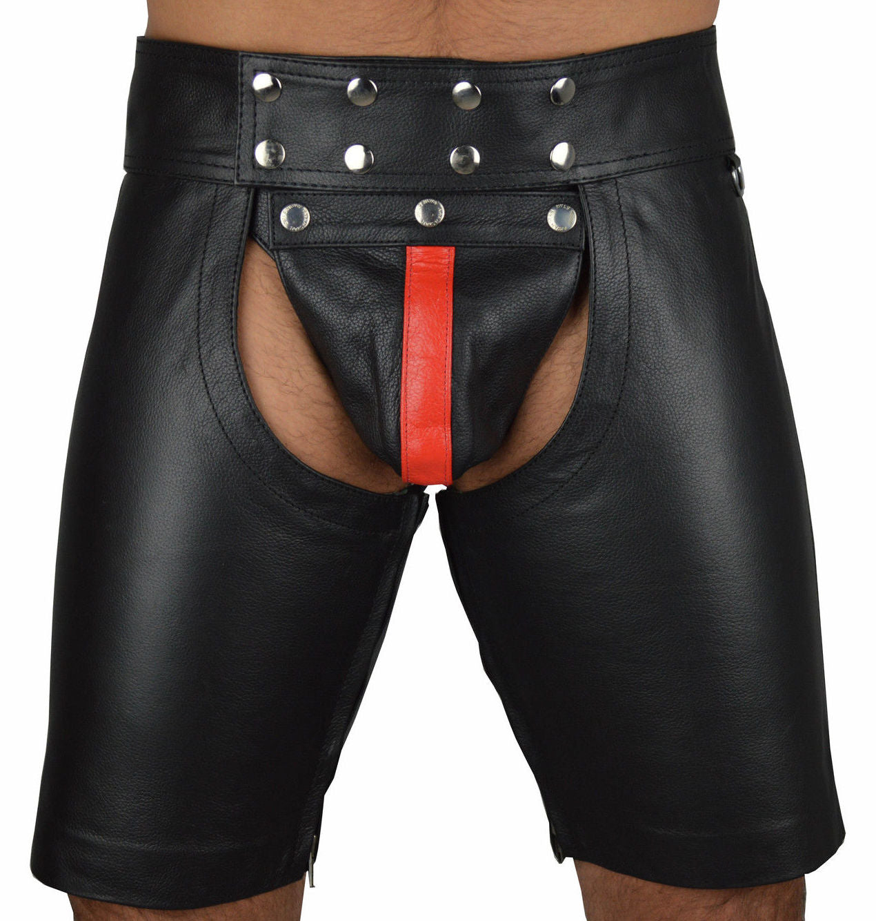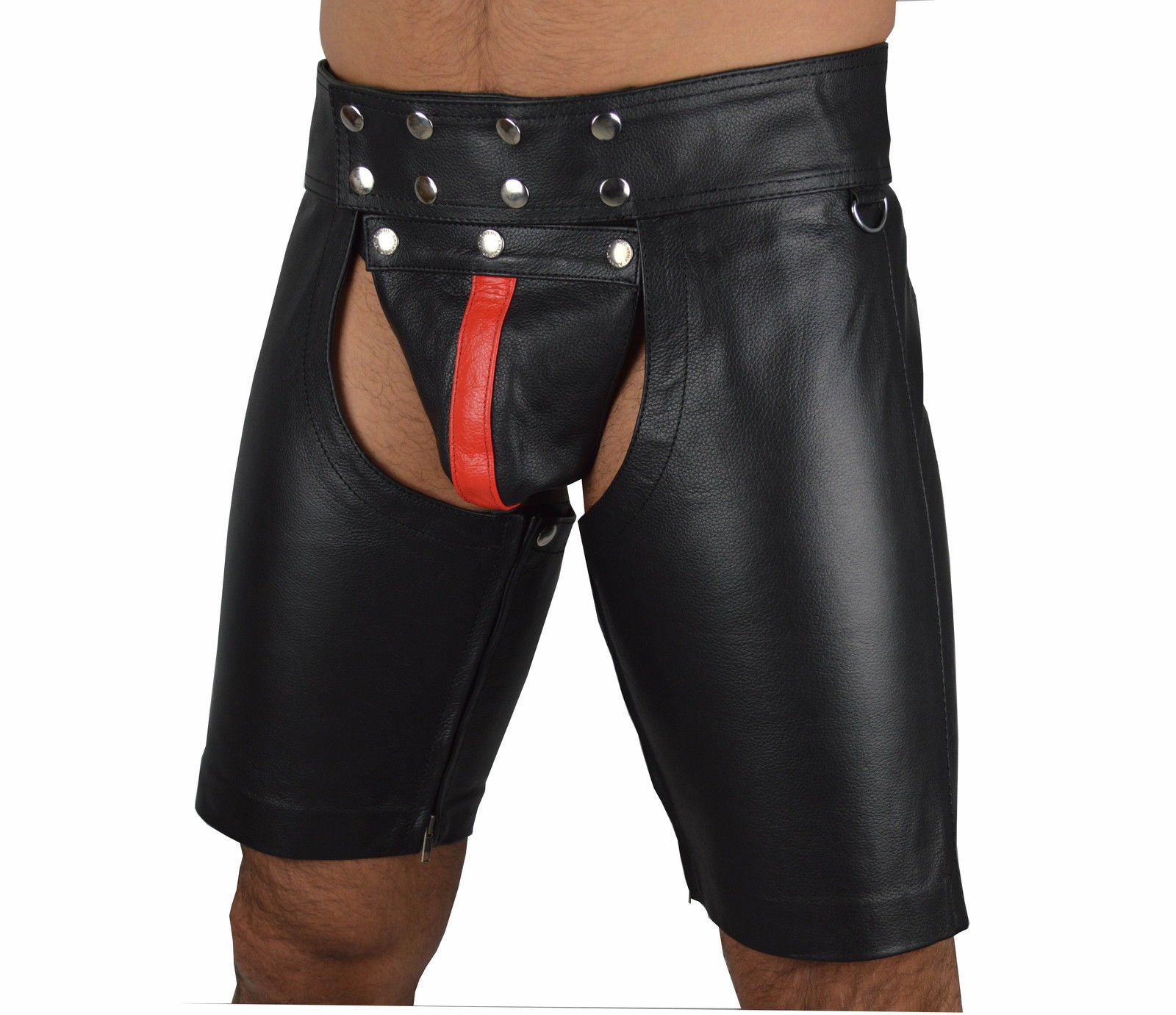 Men's Real Cowhide Leather Chaps Shorts Chaps Detachable Codpiece