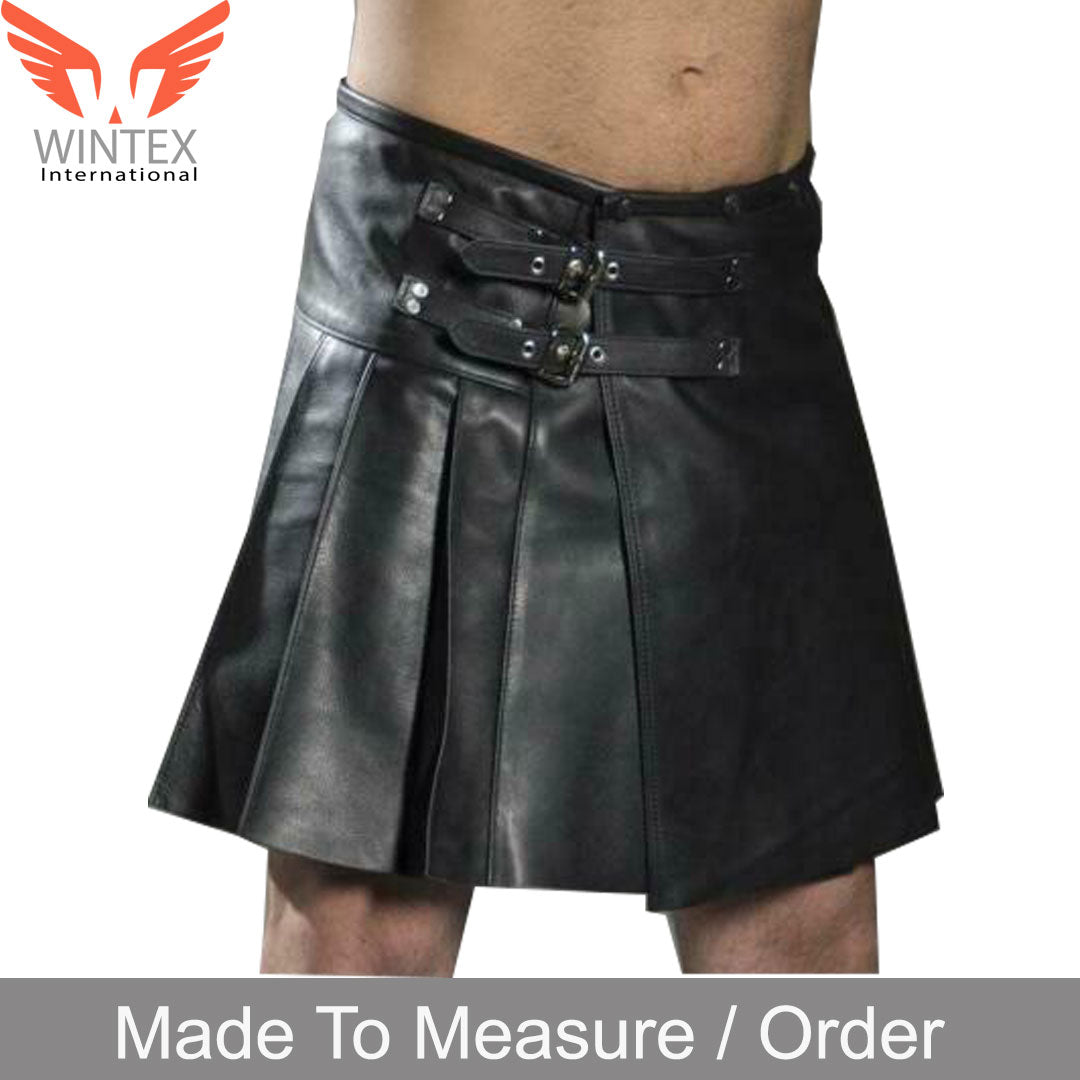Made of high-grade natural grain cow Leather Pleated Kilt. This pleated kilt is an ideal outfit for clubbing and parties. Both Buckles & Snap buttons Closure.