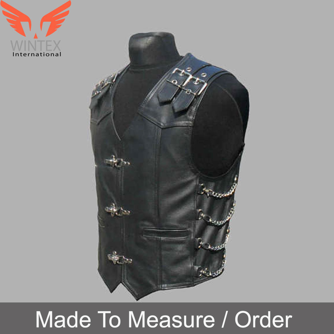 Men’s Genuine Leather Bikers Vest Chained Choppers Vest Steampunk Vest Goth Vest