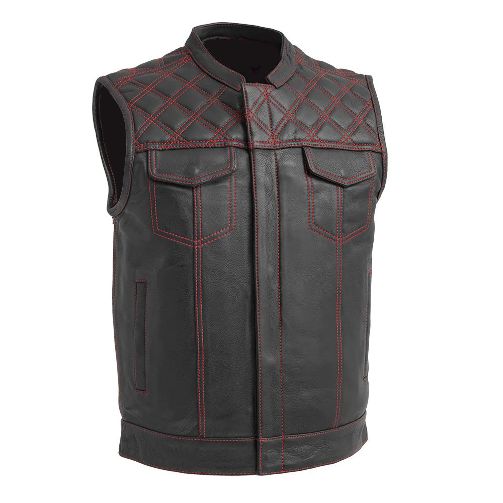 Made of Fine Quality Real Full Grain Soft Cowhide Leather, Zip Front Closure,2 Chest Pockets & 2 Front Pockets ,Original YKK Zips, Quilted Panels, Red Thread Stitching, Hidden Buttoned Front Closure Over Zip, 2 Lining Pockets, Contrast Stitching, Polyester Lining. Impressive, Heavy Duty, Long Lasting and Exclusive Look.