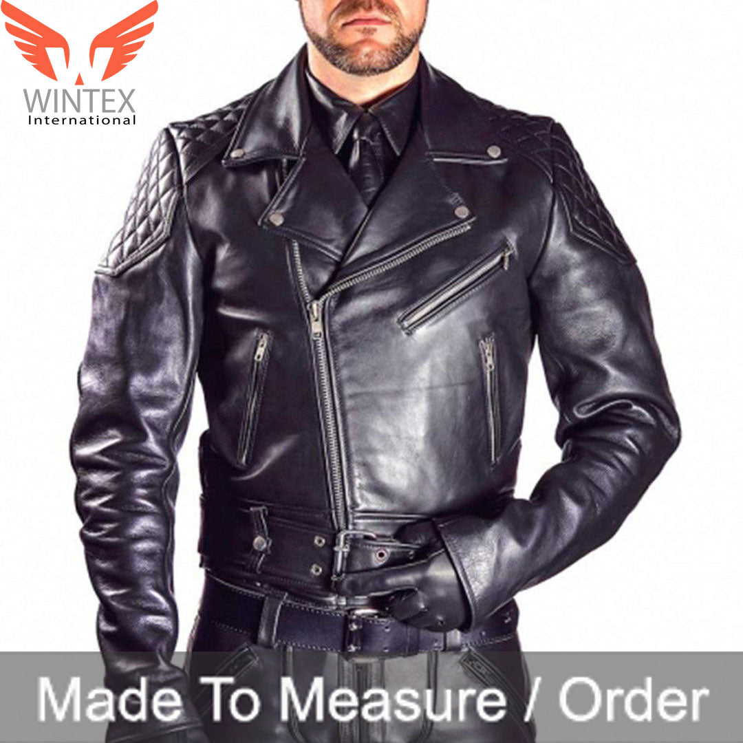 Zip-Up Front, Natural Grain Leather. 3 Front Zipped Pockets, Button Lapels,2 Inner Pockets. Classic Brando Style With Quilted Panels, Zipped Cuffs, Waist Belt, YKK Heavy Zips, Polyester Lining. Strong & Durable Excellent Stitching and Fitting.