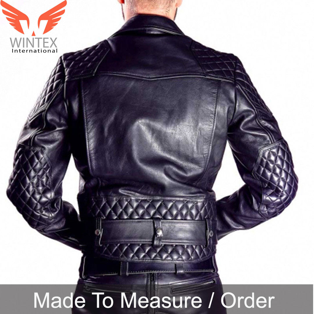Men’s Real Leather Bikers Quilted Panels Jacket:
