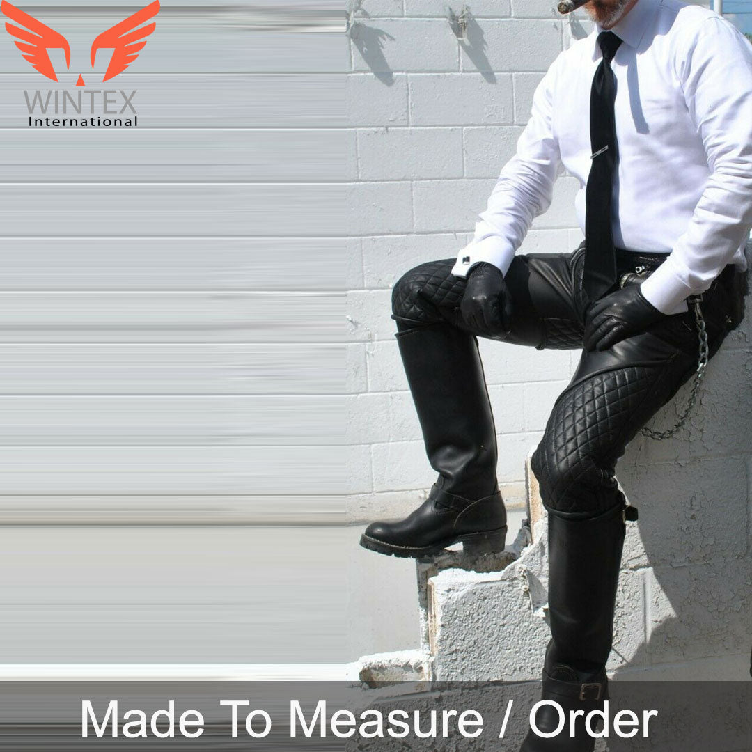 Men’s Genuine Leather Quilted Panels Carpenter Pants – Slim Fit Bikers Pants