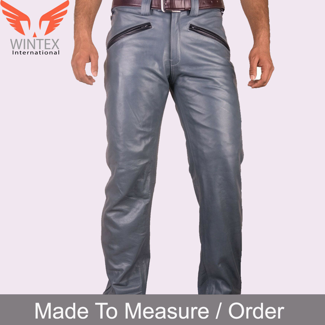 Men’s Real Cowhide Leather Bikers Pants Bikers Grey Leather BLUF Bikers Pants