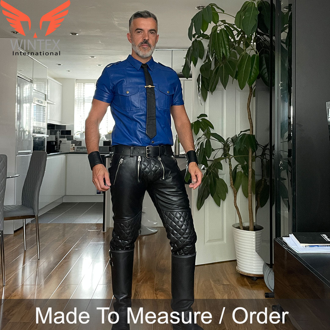 Men’s Real Leather Quilted Panels Carpenter Pants Bikers BLUF Pants