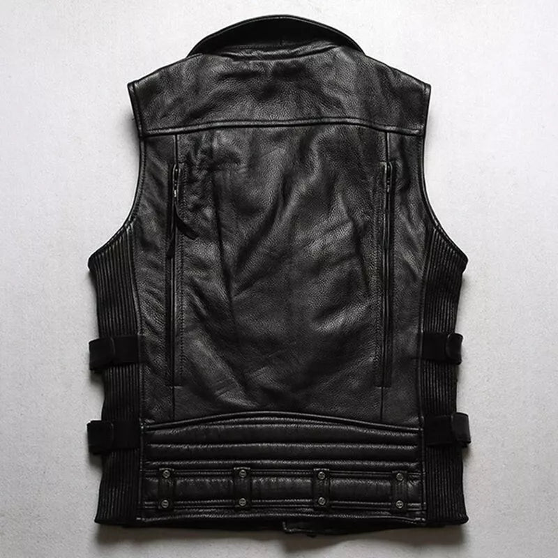 MEN'S REAL COW LEATHER BIKERS VEST WITH QUILTED & STRECHABLE PANELS BIKERS VEST