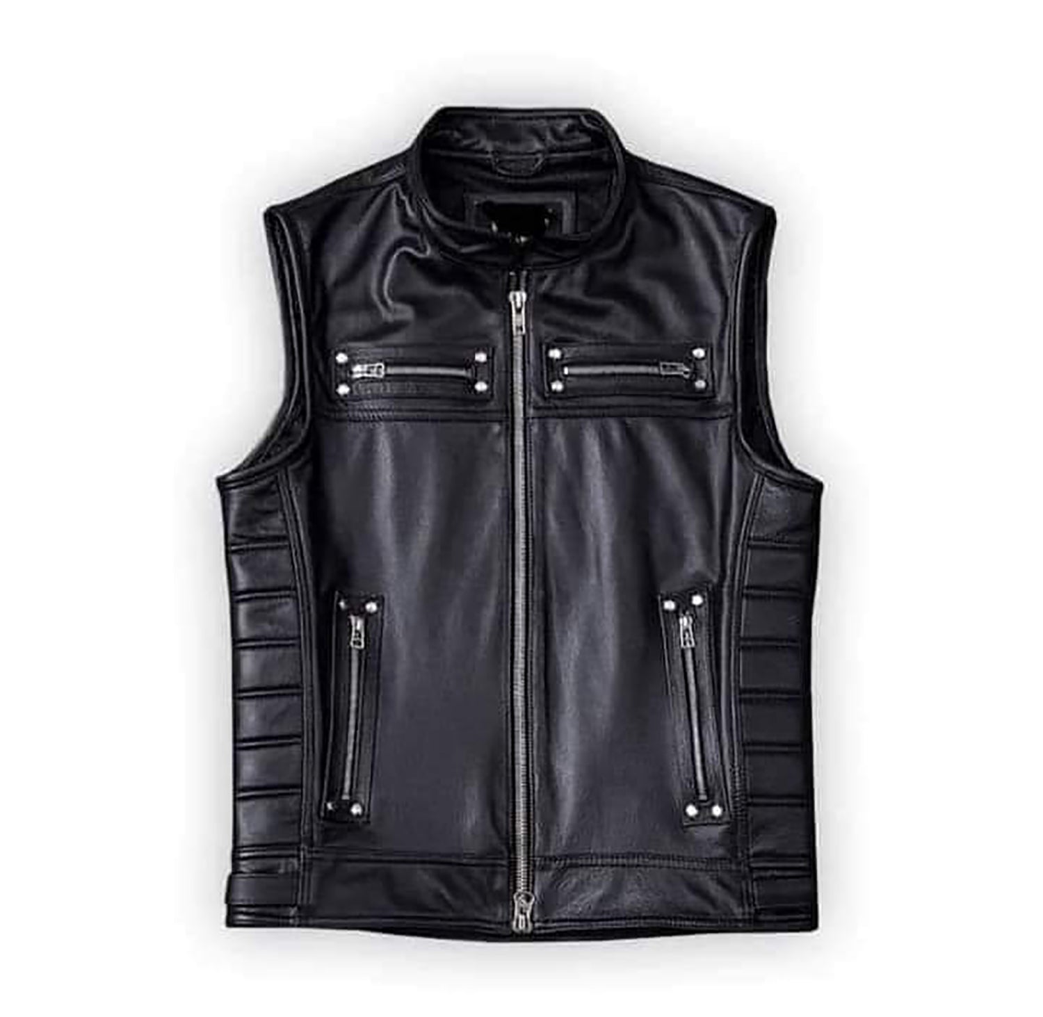 MEN'S REAL COW LEATHER BLACK BIKERS VEST WITH QUILTED / PADDED PANELS BIKER VEST