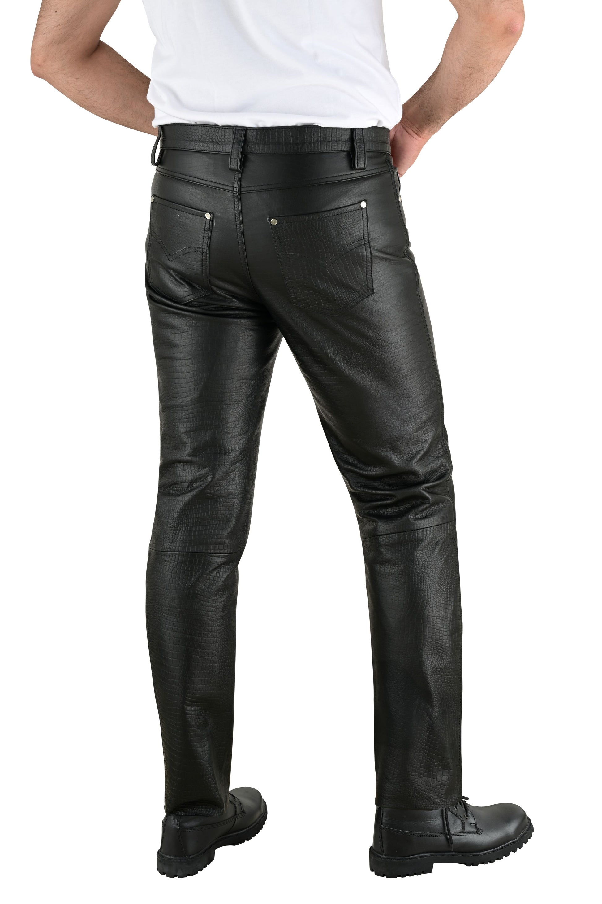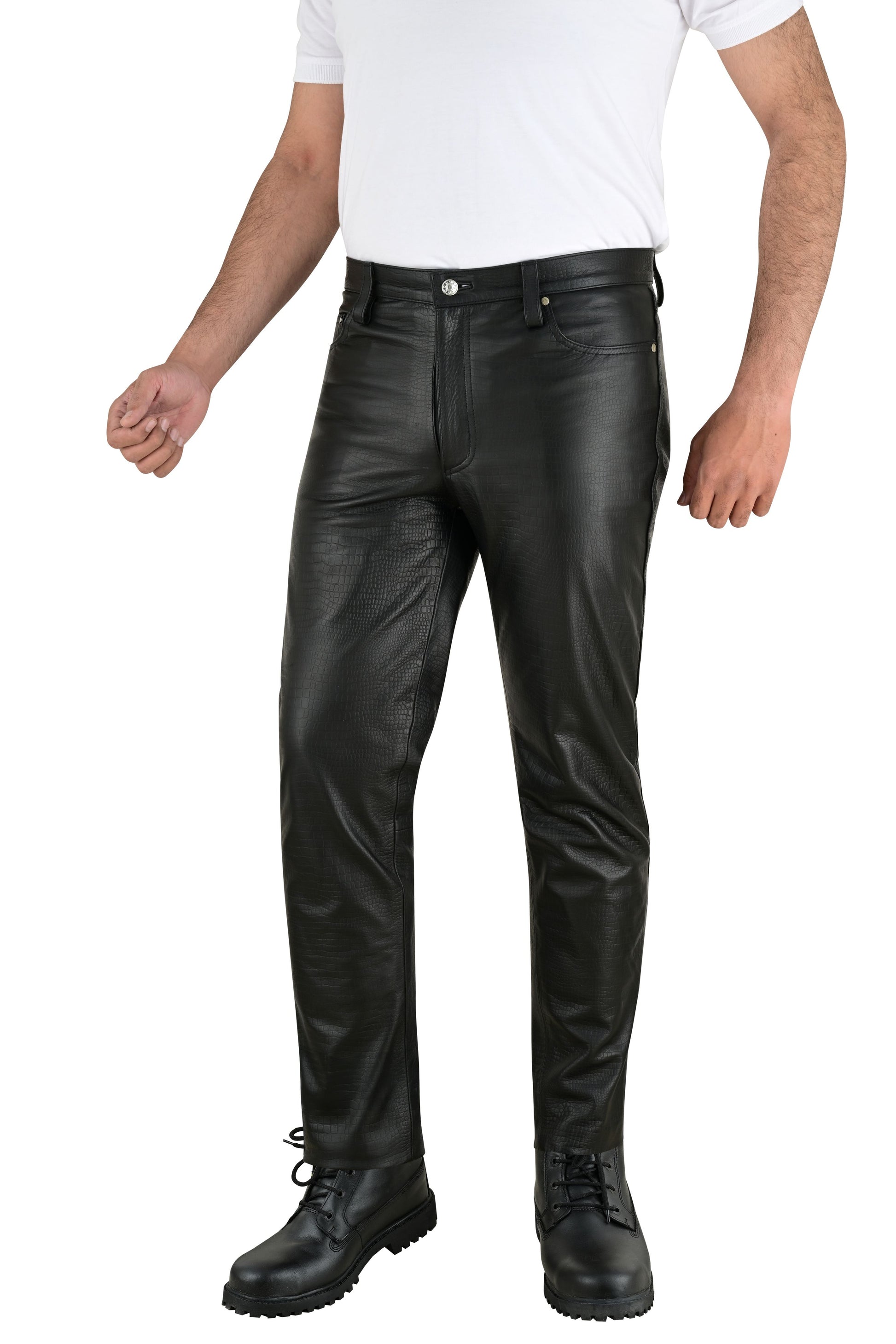 Men's Real Cowhide Crocodile Print Leather Biker Pants (501 Style)