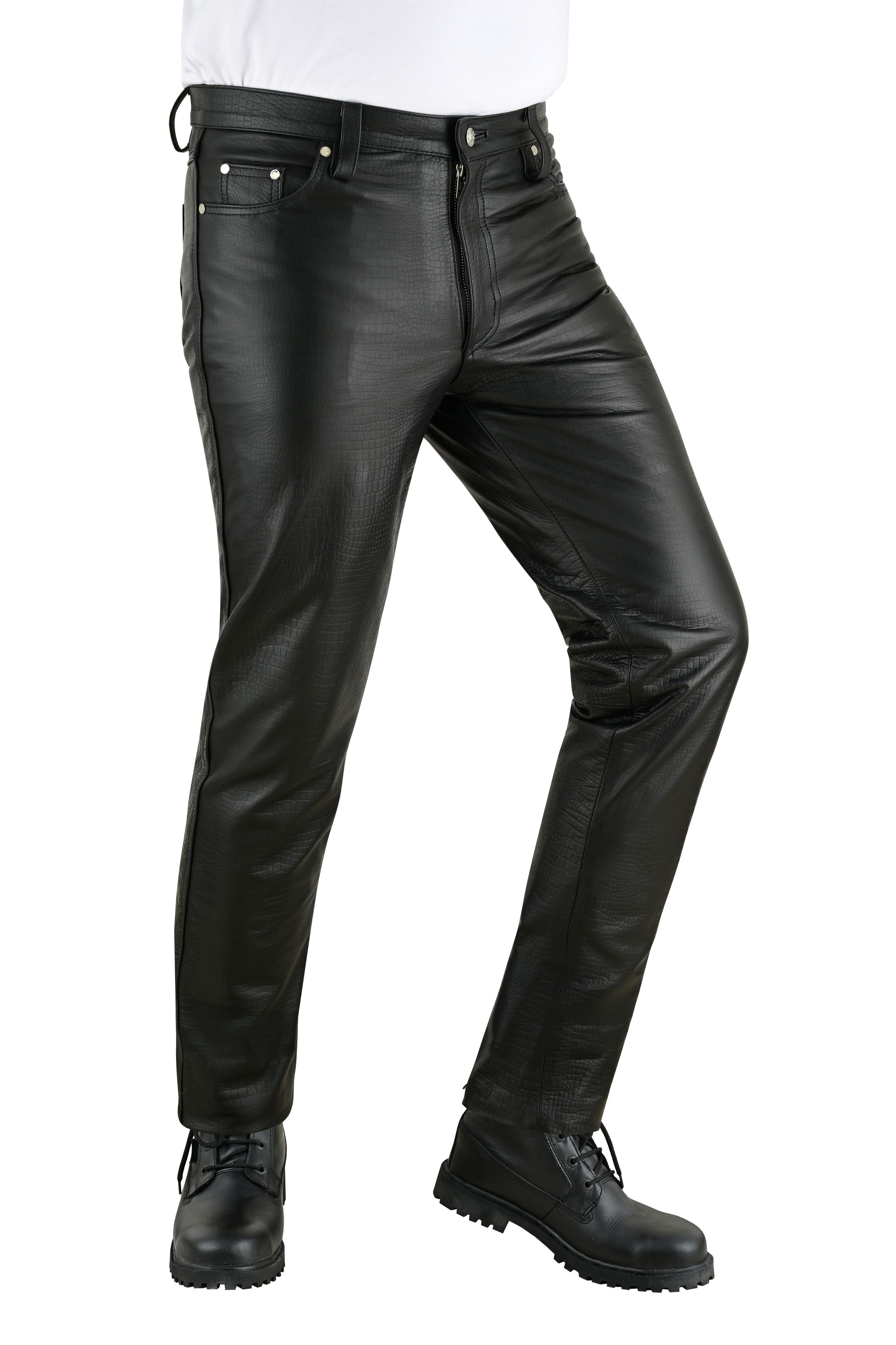 Men's Real Cowhide Crocodile Print Leather Bikers Pants 5 Pockets Pants 501 Style Leather Pants