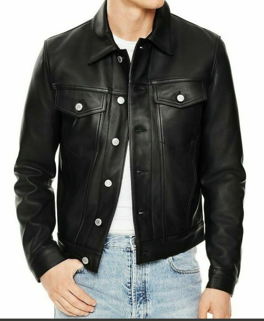 Men's Real Lamb Leather Levi's Style Jacket Trucker Jacket Bikers Jacket