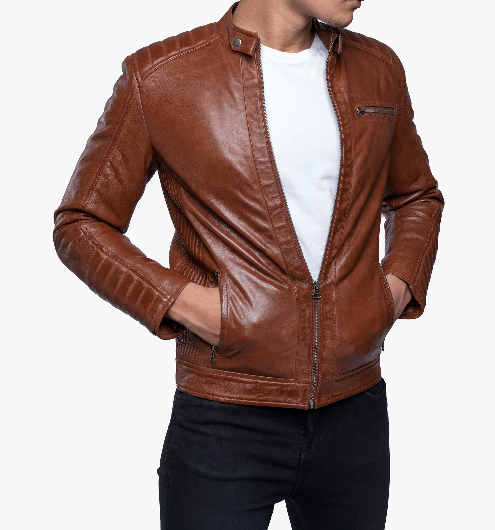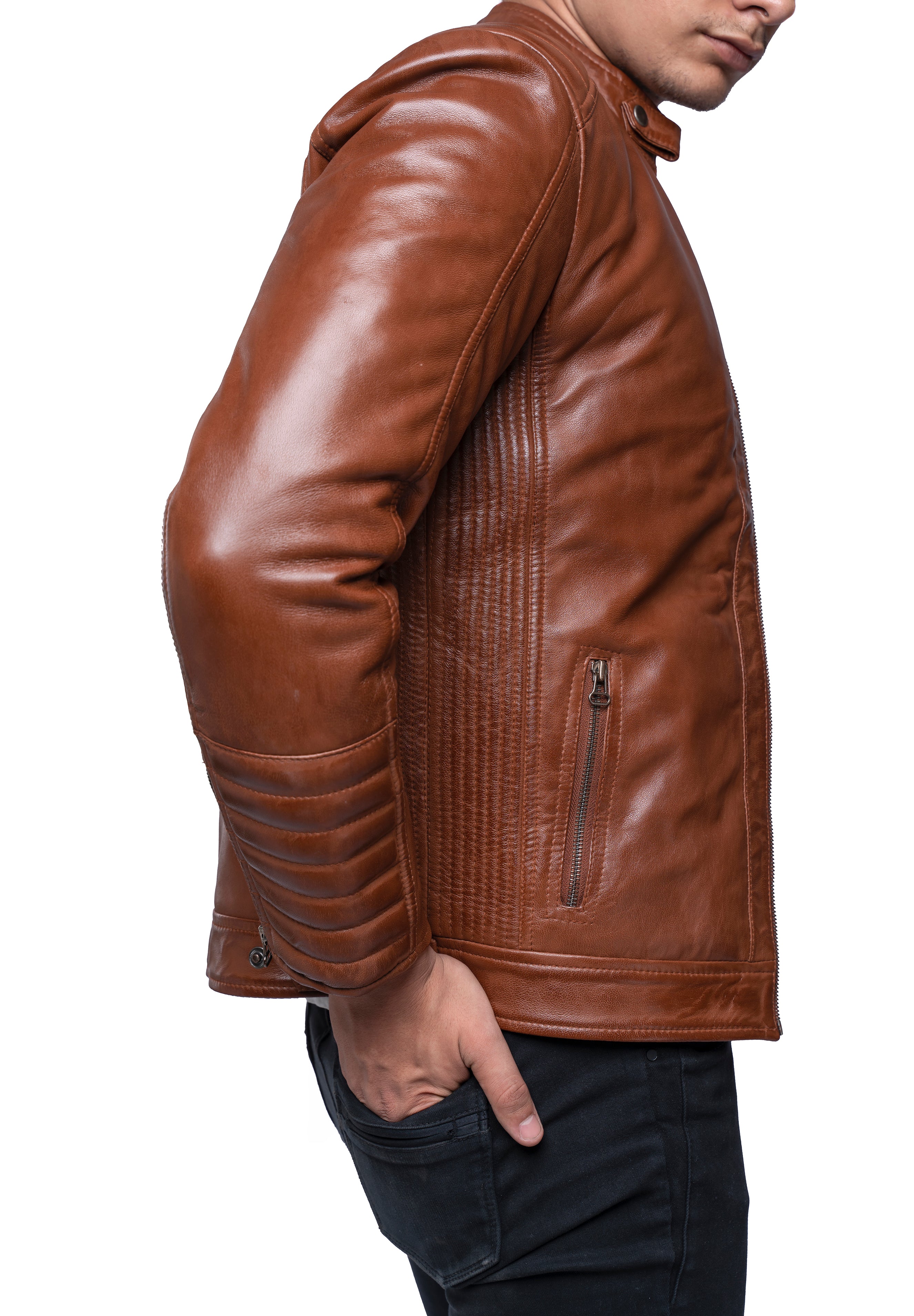 Made of Fine Quality Lamb Leather, Front Zip Closure, Leather Quilted Panels, Hand Waxed, 3 Front Zipped Pockets, Zipped Cuffs,Waist Snapped Straps, Stitching Detailed Panels, 2 Inside Pockets, Fully Lined.