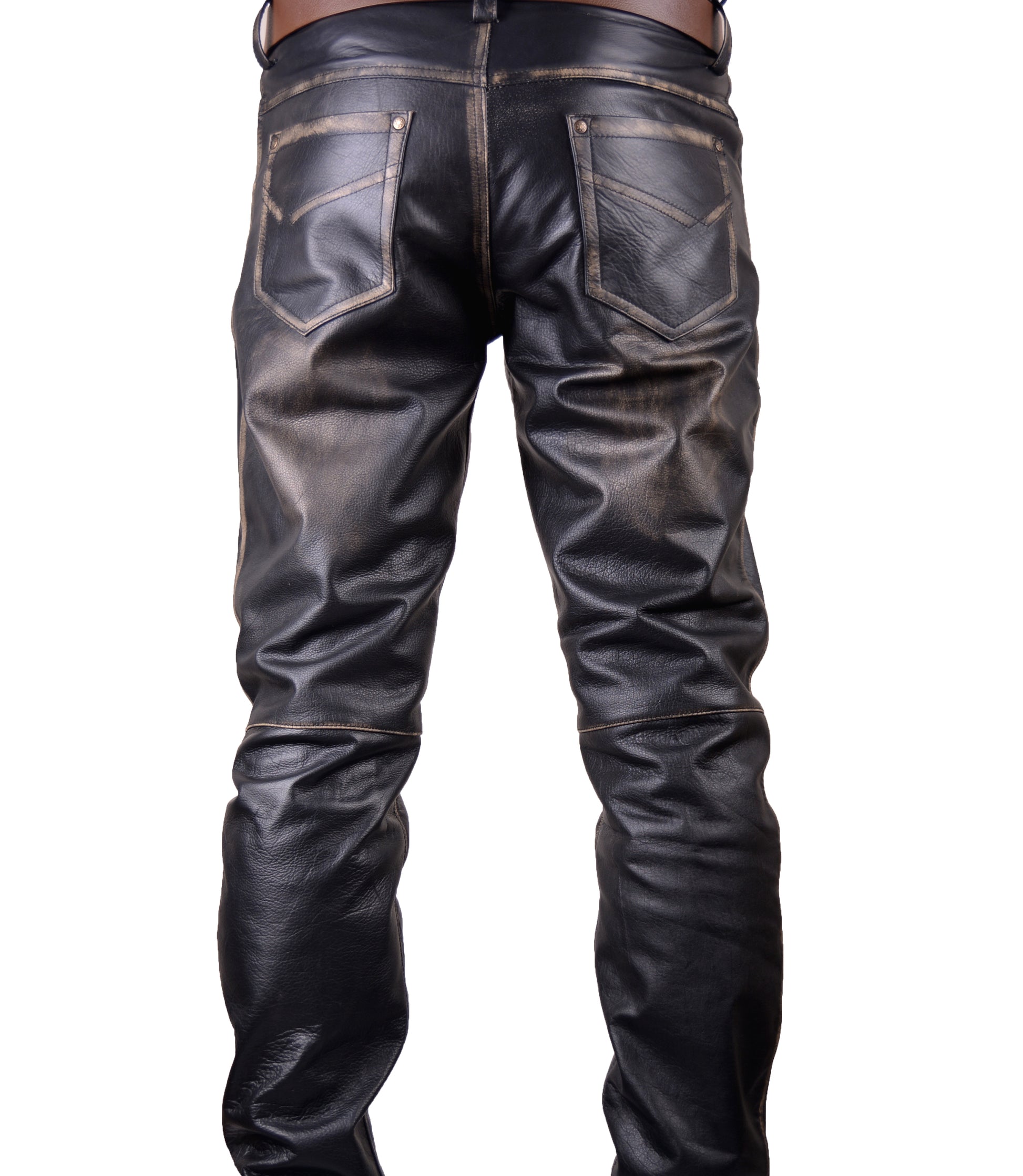 Made of very fine quality COWHIDE RUB OFF LEATHER, Handmade Effect, Snap Button fastening, Zip Fly.2 Front Pockets, 1 watch/Coin Pocket, 2 Back Pockets,Fine quality polyester lining.