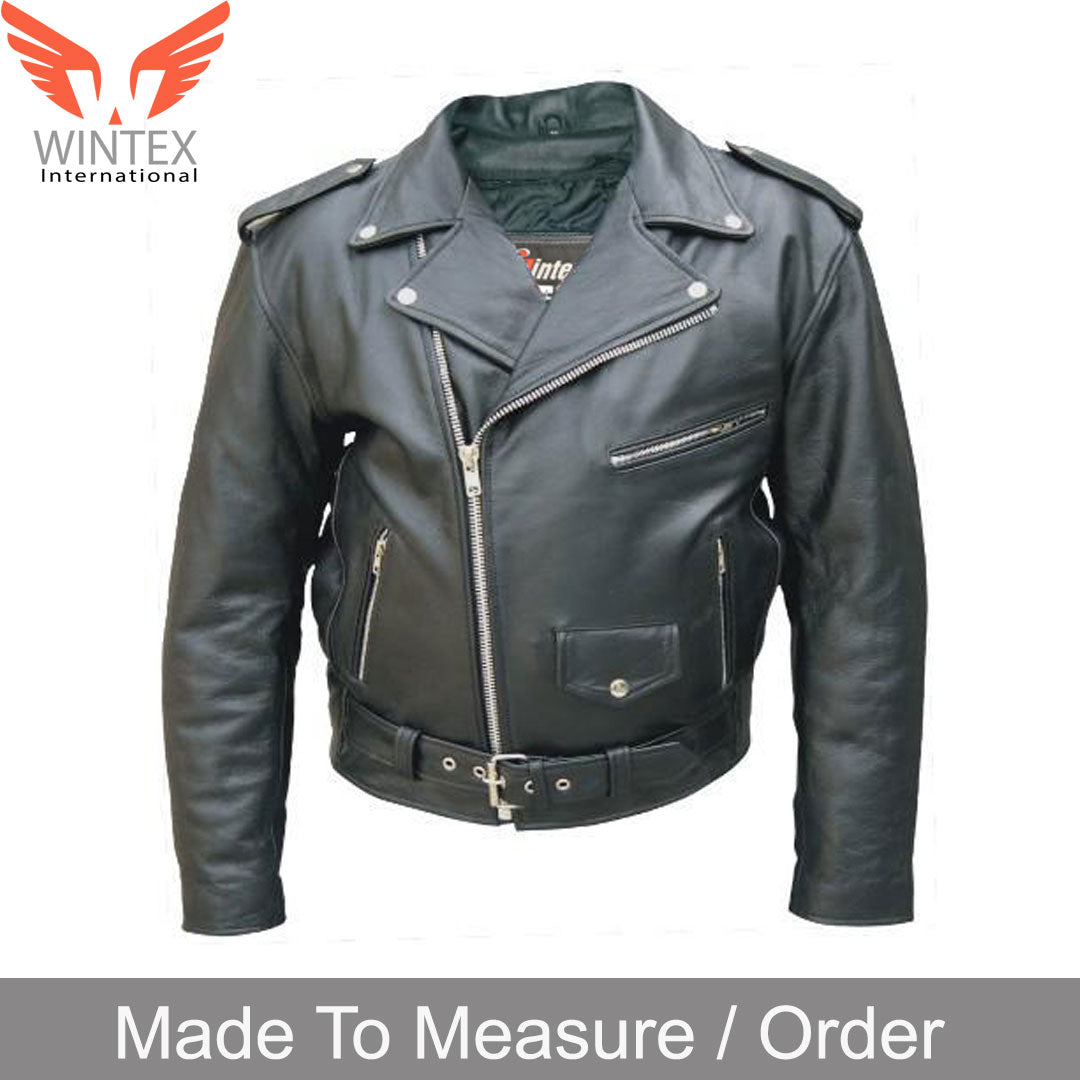 Zip-Up Geniune Cowhide Leather. Strong & Durable. 3 Front Zipped Pockets, 1 Coin Pocket with Stud, 2 Inner Pockets. Classic Brando style with Belt, Studded Lapels, and Epaulets. Zipped Cuffs. YKK Zips Polyester Lining. Excellent Stitching and Fitting.