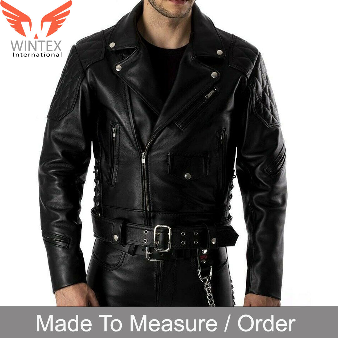 Zip-Up Front, Genuine Cowhide Full Grain Real Cowhide Leather. Strong & Durable. 3 Front Zipped Pockets, Side Laces, 2 Inner Pockets. Classic Brando Style With Quilted Panels, Zipped Cuffs,2 Zips At Sleeves, Waist Belt, Snap Buttoned Lapels, YKK Heavy Zips, Polyester Lining. Excellent Stitching and Fitting.