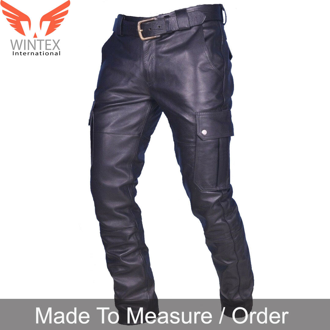 Men’s Real Cowhide Leather Cargo Pants Bikers Pants With Cargo Pockets