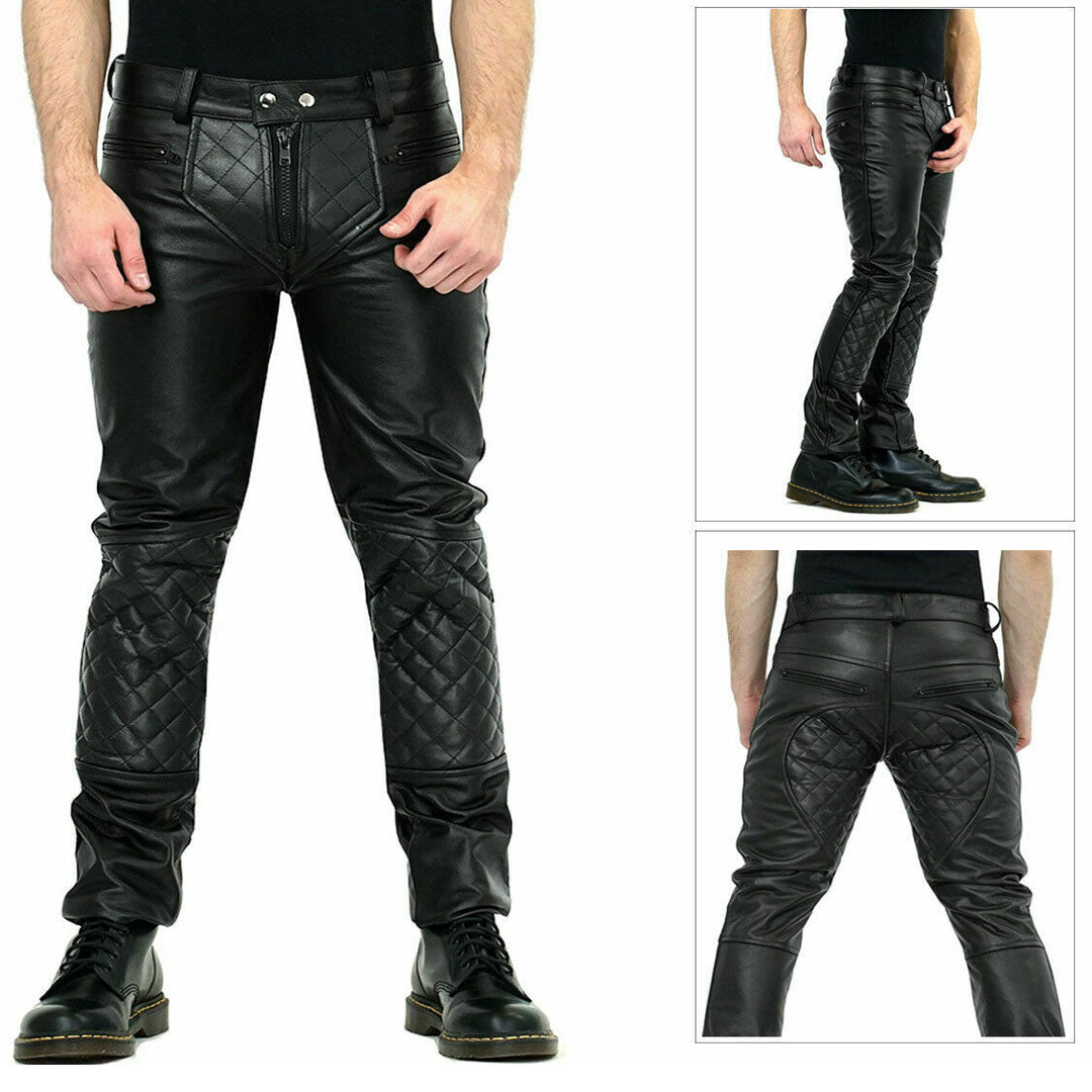 Men’s Real Cowhide Leather Quilted Bikers Pants