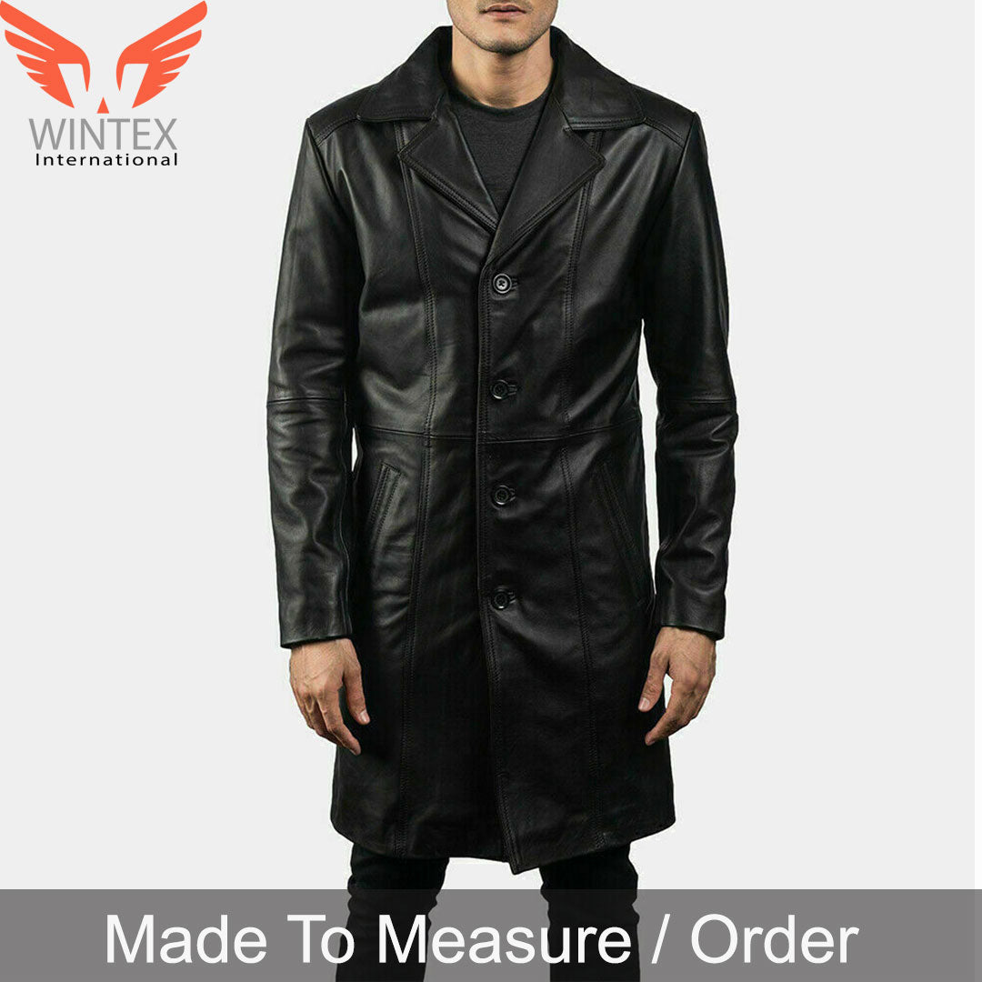 Wintex made leather long coat is made from the real Lamb leather, Button Front closure, Perfect for biker and fashion wear, 2 front pockets, Fully lined, Inside pockets, Hand made.
