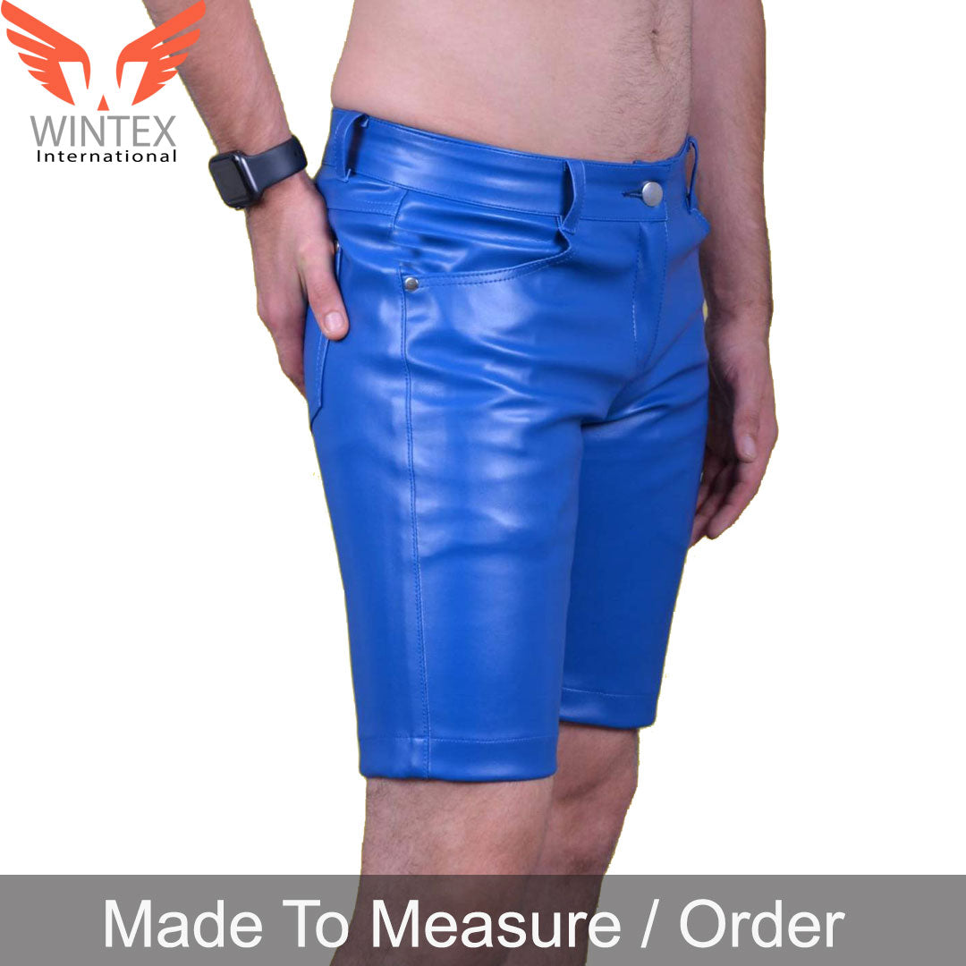 Men’s Genuine Lamb Leather 5 Pockets Shorts in Blue Color