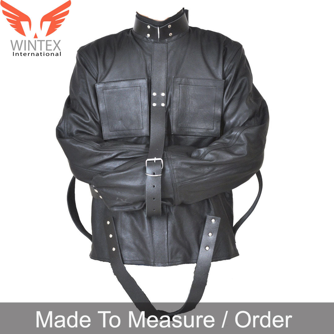 MEN’S REAL LEATHER HEAVY DUTY STRAITJACKET RESTRAINT LEATHER JACKET